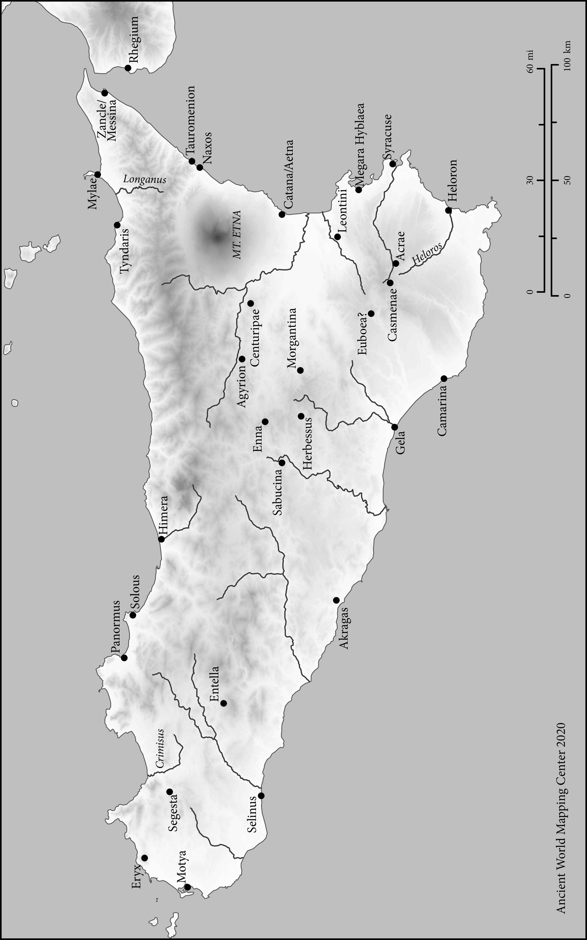 This book has been shaped by innumerable teachers, colleagues, and friends over the last two decades, beginning with my first teachers: my parents, Cathy and Steve Thatcher, and my grandfather, Curt Roy. My interest in Sicily was first piqued by my trip with the Intercollegiate Center for Classical Studies in Rome in the fall of 2002; one view of the lights of Messina across the Straits from Reggio, and I never looked back. This project began as a dissertation at Brown University, and I am grateful to my committee members, Sue Alcock and David Konstan; Chris Witmore also gave helpful advice on archaeological matters. Thanks are due above all to my adviser and mentor, Kurt Raaflaub, whose generous willingness to read drafts, provide expertise, and offer advice was critical both during the dissertation process and ever since. The dissertation became a book only through the support of Carla Antonaccio, who believed in this book even before I did, and Stefan Vranka at Oxford University Press, who was willing to wait for it. Both of them gave much-needed assistance and advice over the years. I am grateful also to the anonymous readers for the press, whose critical eyes vastly improved the final product.