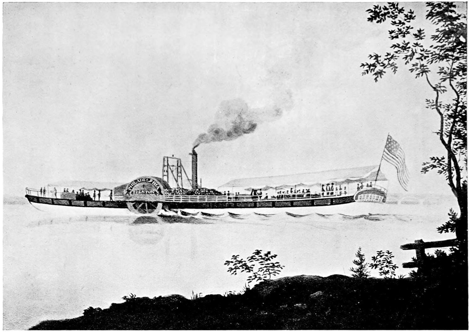 Robert Livingston Stevens, son of John Stevens, built about that time (1813) the Philadelphia, which attained an average speed of eight miles. Speed was a question to which he devoted considerable attention, for he realised its importance, and nearly every vessel he turned out was an improvement upon its predecessor. The inventions and improvements which he introduced inaugurated a new era of steamboat construction. Of the fate which overtook some of these early vessels, it may be noted that the Clermont died of premature old age, the CarofNeptunewas broken up, the Paragonwent to the bottom, and the Hope, the Perseverance, the Firefly, and the Richmondwere broken up.