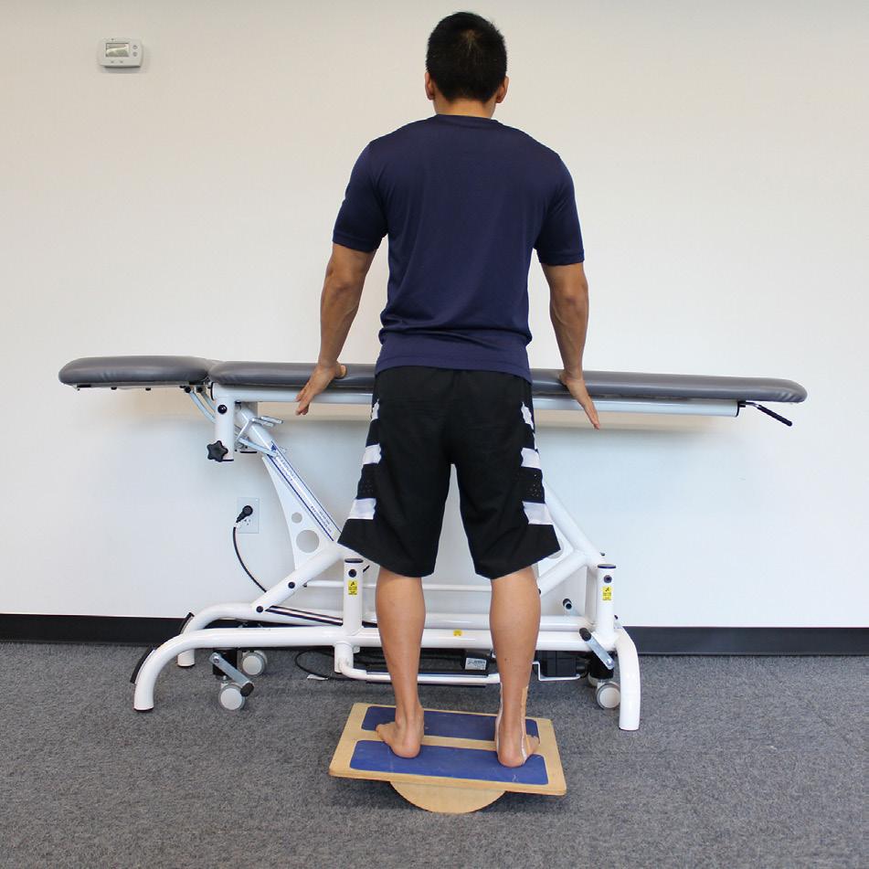 In Phase II, the resistance may be increased, and isotonic control is promoted using a balance board with a weight.