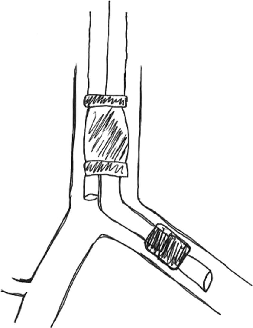 Bronchial blockers are another method used for selective ventilation of an individual lung. The blocker is a catheter with a balloon at the tip that is inflated to occlude the lung of the bronchus it is placed in. Open-tipped bronchial blockers offer the ability to apply continuous positive pressure and to suction the airway, making them more useful than the alternative close-tipped bronchial blockers.6 The smallest size is a 2 French, which may be used in a 3.5 or 4.0 mm endotracheal tube. Proper placement of bronchial blockers is especially difficult in smaller children. To assure proper placement of the bronchial blocker, one must visualize key anatomical structures during placement. Fiberoptic bronchoscopy is a reliable method to confirm proper placement of the bronchial blocker.