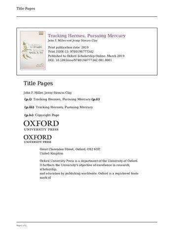 (p.i) Tracking Hermes, Pursuing Mercury (p.ii) (p.iii) Tracking Hermes, Pursuing Mercury (p.iv) Copyright Page