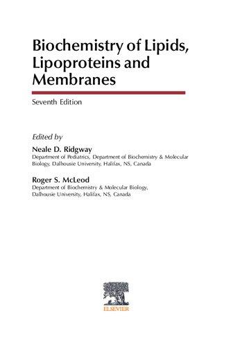 Biochemistry of Lipids, Lipoproteins and Membranes 7th Edition Neale Ridgway (Editor)