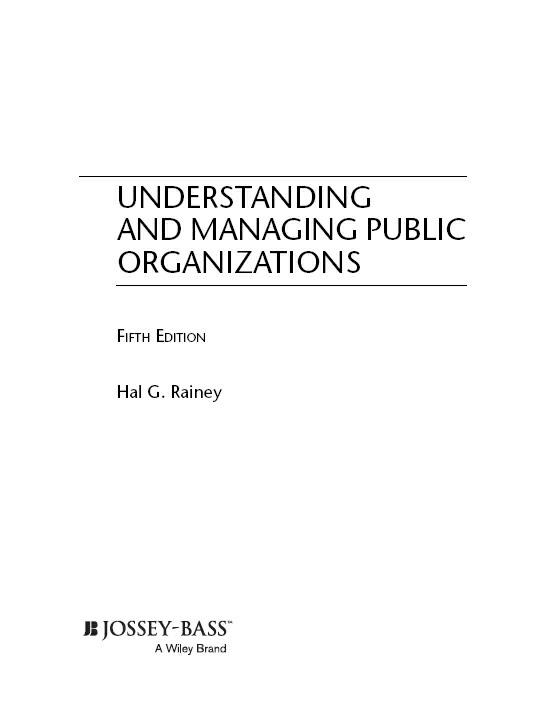 The primary audience for previous editions of Understanding and Managing Public Organizations included graduate students and scholars interested in public management and applications of organization theory to the public sector The difference between the needs of doctoral students and those of master of public administration (M.P.A.) students and undergraduate students presents a challenge for this book. Faculty colleagues at other universities who have used the book in their classes have sometimes mentioned that their M.P.A. students do not see the need for the many citations to academic research articles and reviews of such academic materials They also mention, however, that their doctoral students value and appreciate the reviews of academic literature and research, and the citation of such work. For this fifth edition, this raised the question of whether I should reduce the reviews and citations of academic research to meet the needs and preferences of some MPA students, or to keep this coverage and even extend it by updating it Faculty colleagues with whom I discussed this matter, as well as anonymous reviewers of the proposal for this edition, mostly advised the latter approach keeping the coverage of academic research. One reviewer emphatically insisted that this coverage represents a distinctive contribution of thebook,andthatIshouldavoid“dumbingdown”thebook