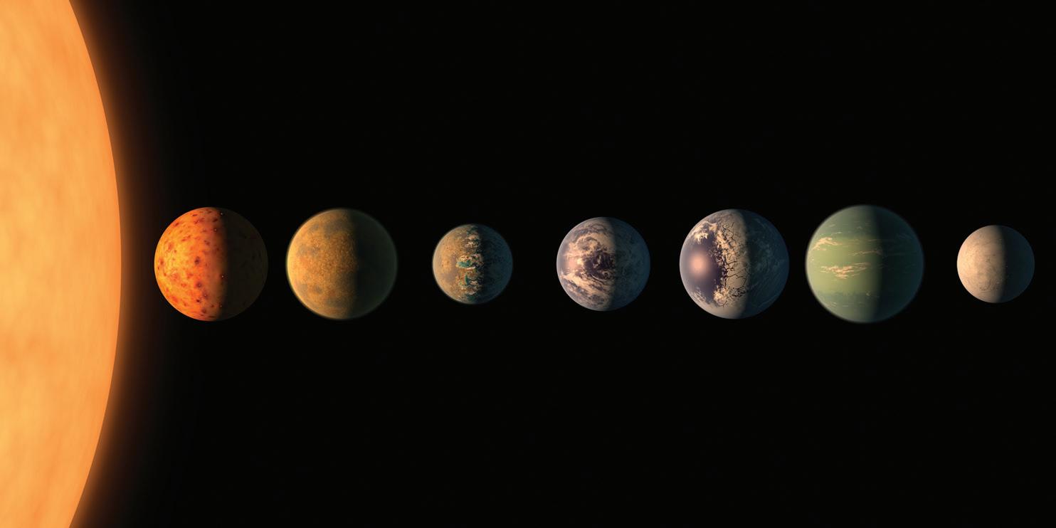 conception of the seven-planet TRAPPIST-1 system (Courtesy of NASA/ JPL-Caltech).