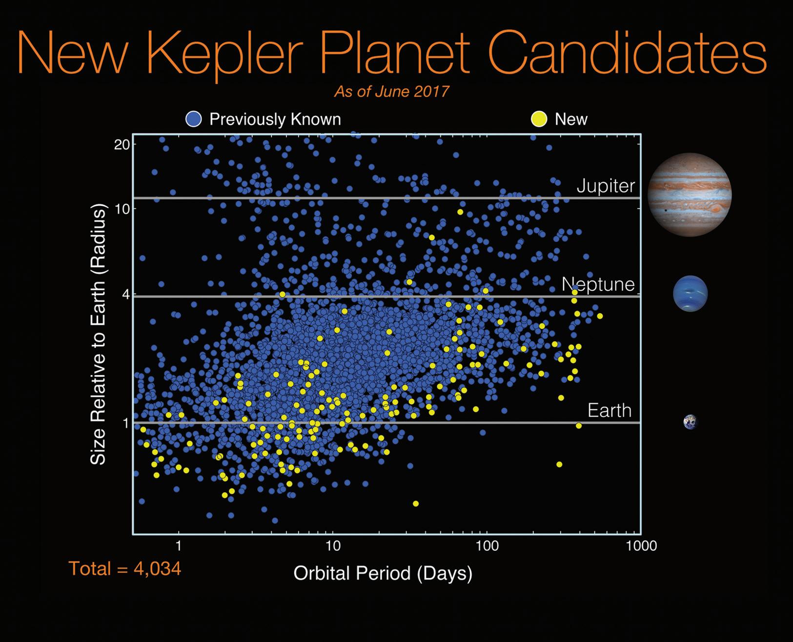 Plate 9. Sizes and orbital periods of the 4,034 exoplanet candidates discovered by the Kepler Mission as of June 2017, from the final DR25 data release (Courtesy of NASA).