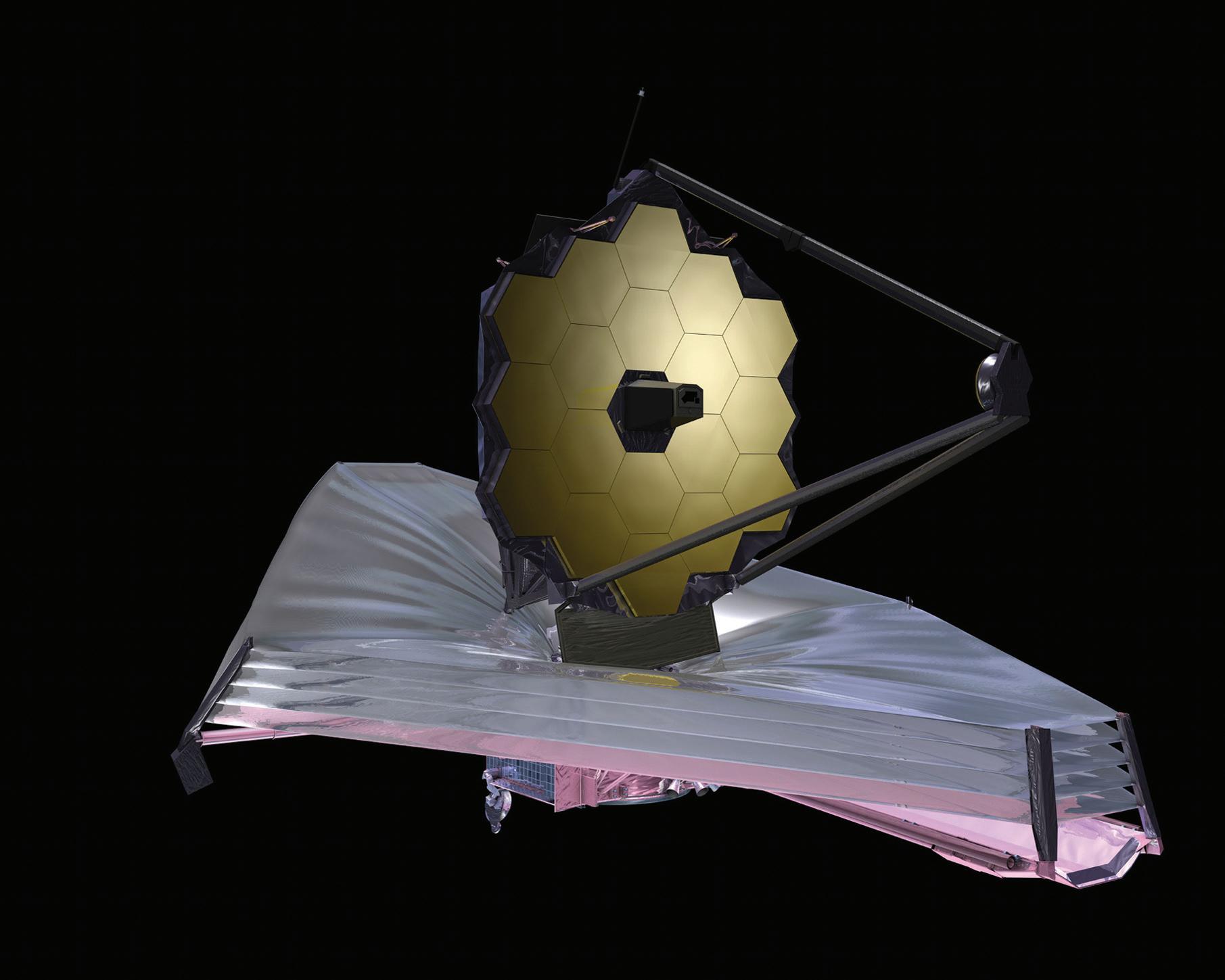 Plate 13. Artist’s depiction of NASA’s James Webb Space Telescope (JWST), showing the segmented telescope on top of its multilayered thermal sunshield (Courtesy of NASA).