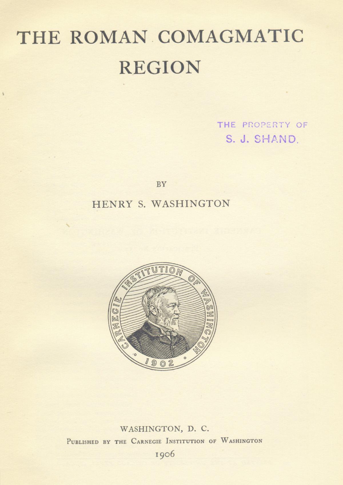 Figure2.1 FrontcoverofTheRomanComagmaticRegion(Washington,1906).