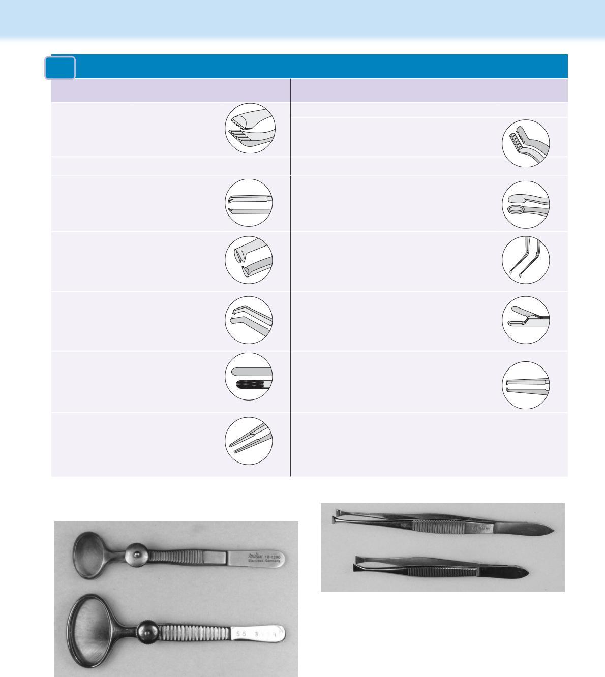 • Table 1.3 – Instruments for eyelid and conjunctival surgeries;