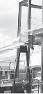Beams are primarily designed to resist bending moment; however, if they are short and carry large loads, the internal shear force may become quite large and this force may govern their design. When the material used for a beam is a metal such as steel or aluminum, the cross section is most efficient when it is shaped as shown in Fig. 1–3. Here the forces developed in the top and bottom flanges of the beam form the necessary couple used to resist the applied moment M, whereas the web is effective in resisting the applied shear V. This cross section is commonly referred to as a wide flange, and it is normally formed as a single unit in a rolling mill in lengths up to 23 m. When the beam is required to have a very long span, and the loads applied are rather large, the cross section may take the form of a plate girder. This member is fabricated by using a large plate for the web and welding or bolting plates to its ends for flanges. The girder is often transported to the field in segments, and the segments are designed to be spliced or joined together at points where the girder carries a small internal moment.