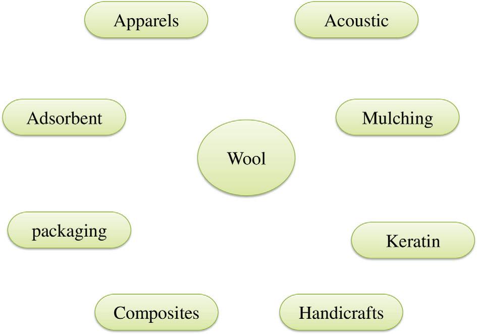 Asmentionedearlier,bio/greencompositesaregainingattentiondaybyday. Currently,themajoritiesofthecompositesarebeingpreparedfromsyntheticorglass fiber,whichisnotbiodegradableandishavingamajorenvironmentalconcern.Inthis context,coarsewoolcanbeusedforthepreparationofcomposites,whichmayprovide bettervalueadditiontothewool.Incontrast,theuseofwoolinthecompositeapplicationisverylimitedsinceunlikeotherplantfibers,woolishavinglessfiberlengthand tensileproperties.Thehighmoistureabsorptionpropertyalsorestrictstheuseofwool fiberinthecomposite.Becauseoftheabove-saidreasons,averylimitedamountof worksisreportedonwoolfiberinthepreparationofbiocomposites.However,woolcan findpotentialapplicationsincomposites,wheremechanicalstrengthisnotcomingas animportantfactor.Theheat,thermal,soundinsulation,andflameresistanceproperties ofthewoolfibercanbeeffectivelyutilizedforthedevelopmentofthecomposites, wherethesepropertiesareessential(Fig.1.2).