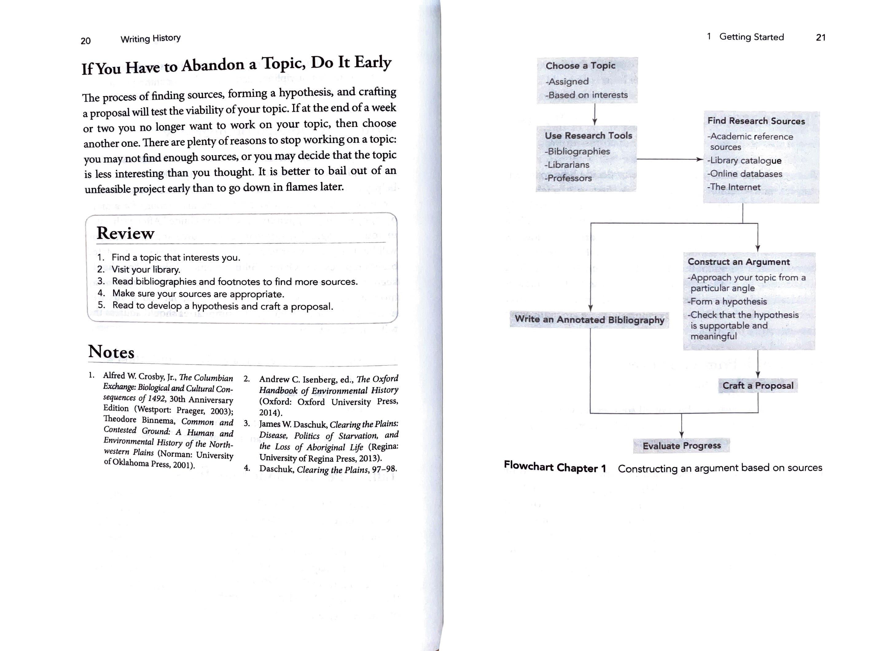 Toe process of finding sources, forming a hypothesis, and crafting a proposal will test the viability ofyour topic. Ifat the end of a week or two you no longer want to work on your topic, then choose another one. There are plenty of reasons to stop working on a topic: you may not find enough sources, or you may decide that the topic is less interesting than you thought. It is better to bail out of an unfeasible project early than to go down in flames later.