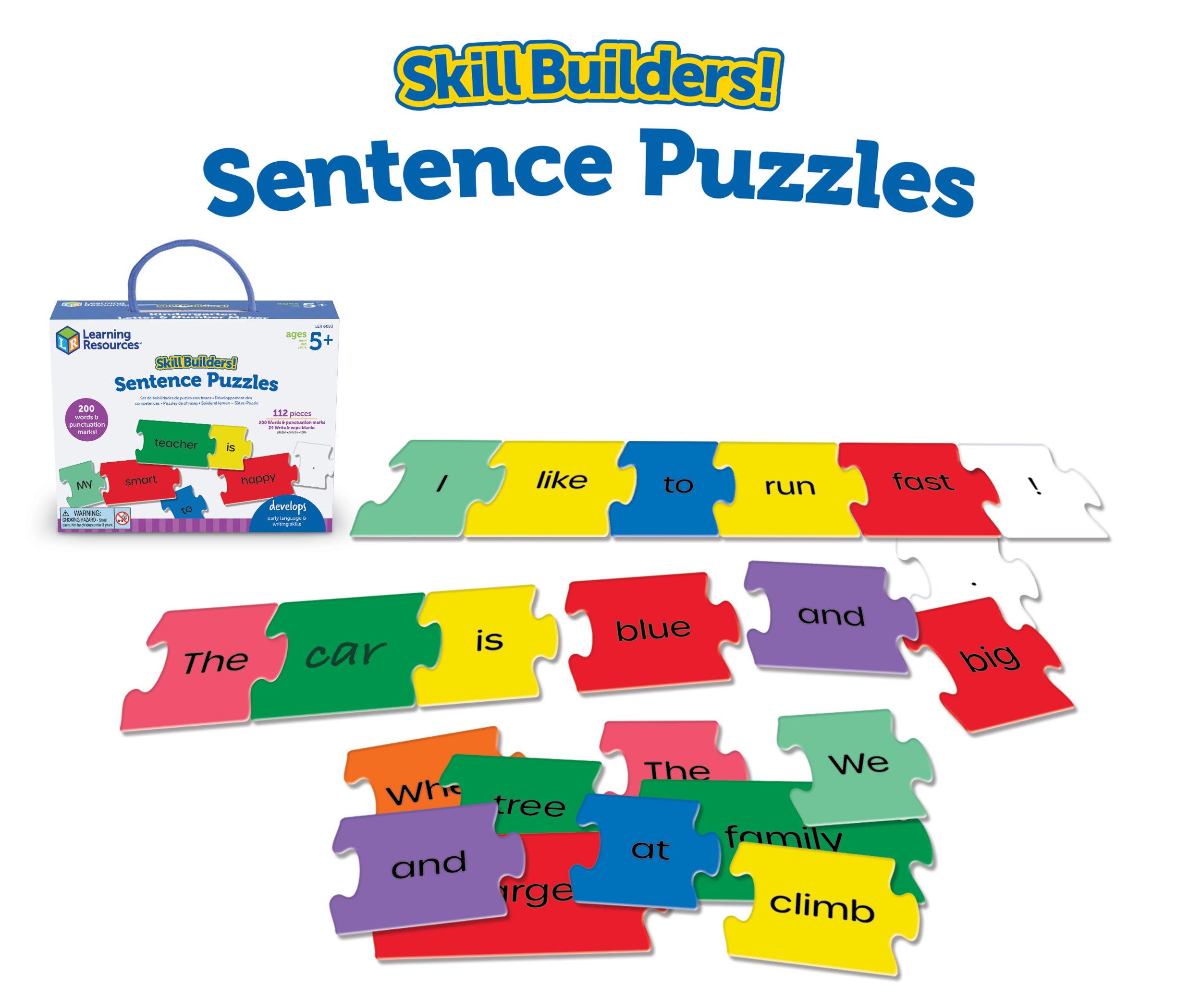•••••••••••••••••• • ••••••••••••••••• • All products, titles, descriptions, SRPs, availability and images are subject to change and are for reference purposes only Please check with Learning Resources for final product information. Confidential and Proprietary. © Learning Resources, Inc. Learning is where we play Early Childhood Ages 5+ Kids build new language skills one piece at a time with these fun sentence puzzles! Includes 112 double-sided word and punctuation puzzle pieces color-coded to represent different parts of speech. Box doubles as a reusable storage and carrying case! Product Name: Skill Builders! Sentence Puzzles Part Number: 6083 Piece Count: 112 Approx. Availability: Spring 2023 Approx. SRP: $14.99 UPC: 765023.06083.6 Case Pack Quantity: 4 Package Dimensions: XX Package Type: XX Country of Origin: China Skill Sets • Sentence Structure • Parts of Speech y