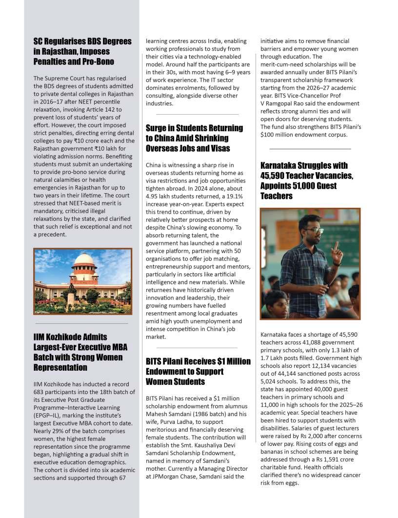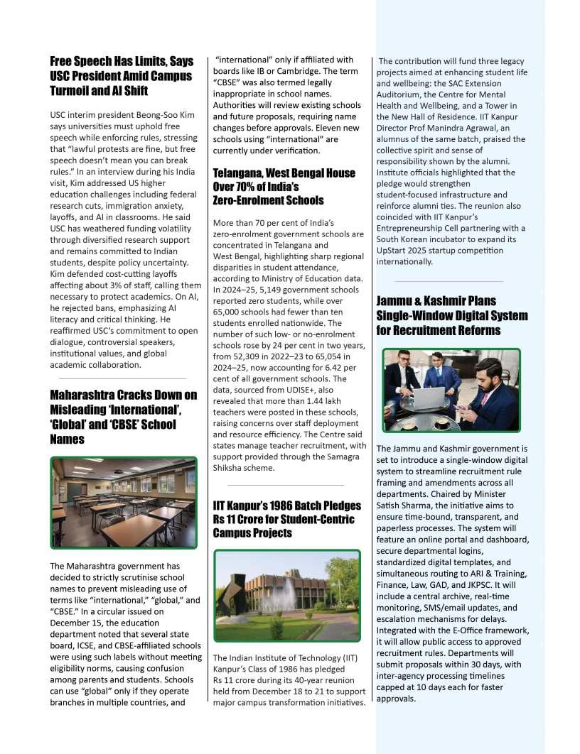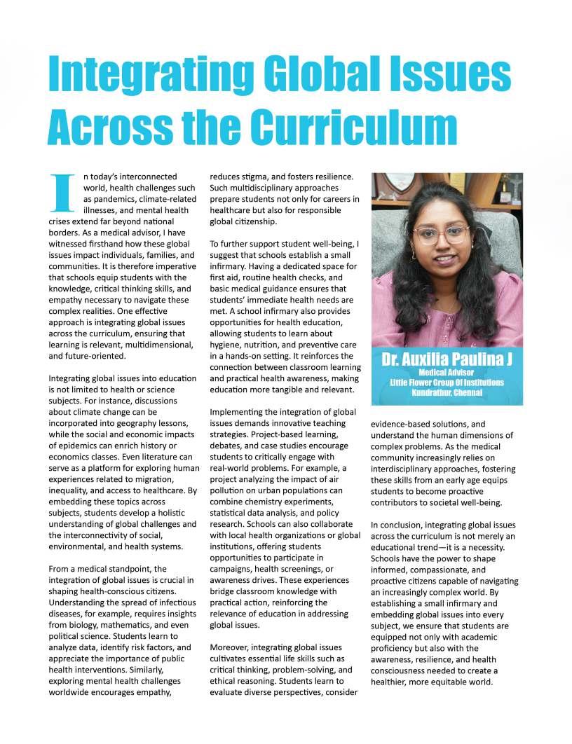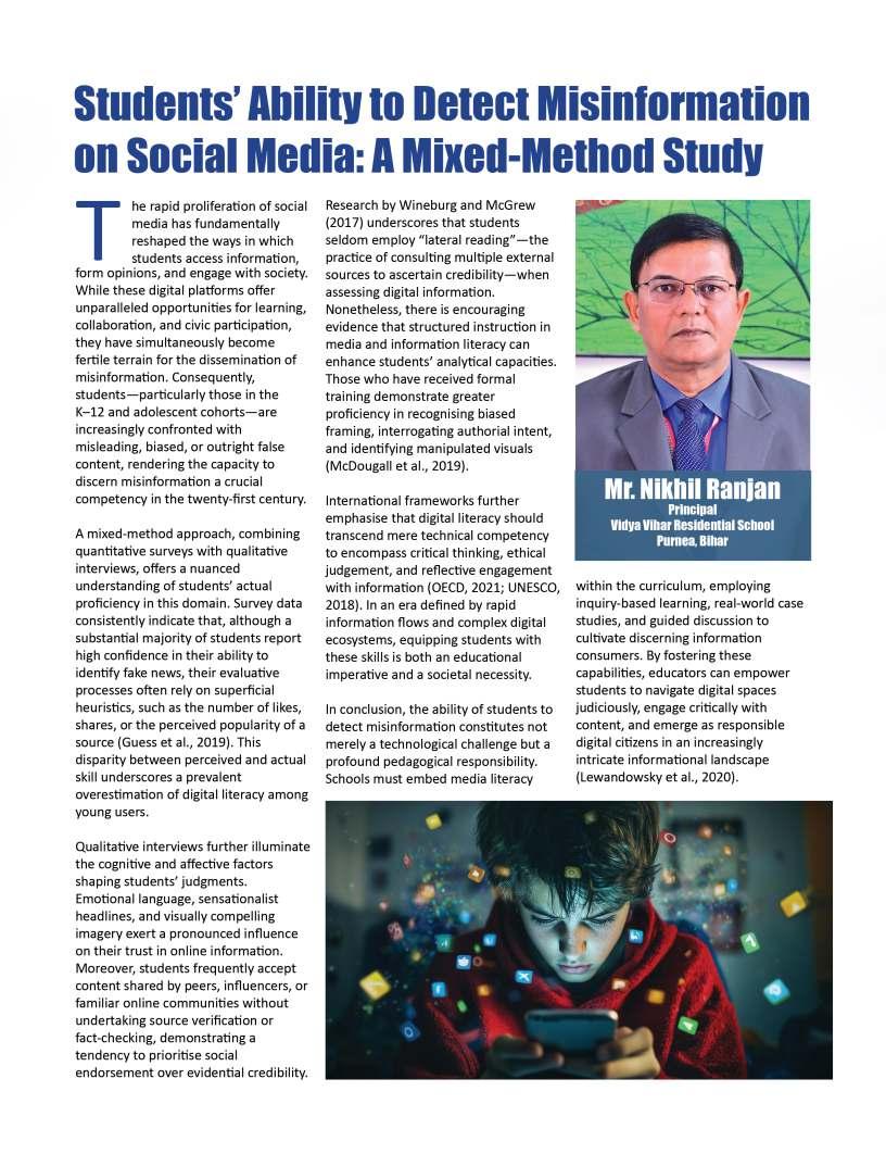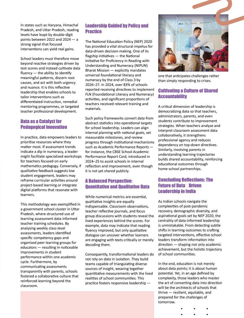 EducationTodayisprivileged topresentitsfirstissueofthe year,bothatributetothesteadfast educationcommunityshapingfuture mindsandamomentforreflection andrenewal.Themonthsaheadare poisedtounfoldtransformative narratives,progressivedialogueand insightofenduringrelevance.This issuealsoreflectsondefining milestones,notablythe13thNational ConferenceonK–12Leadership, heldalongsidetheIndiaSchoolMerit Awards2025attheTaj,Yeshwantpur, Bengaluru—anexceptionalgathering ofeducators,visionariesand policymakerscelebratinginnovation, resilienceandleadershipacrossthe educationecosystem.