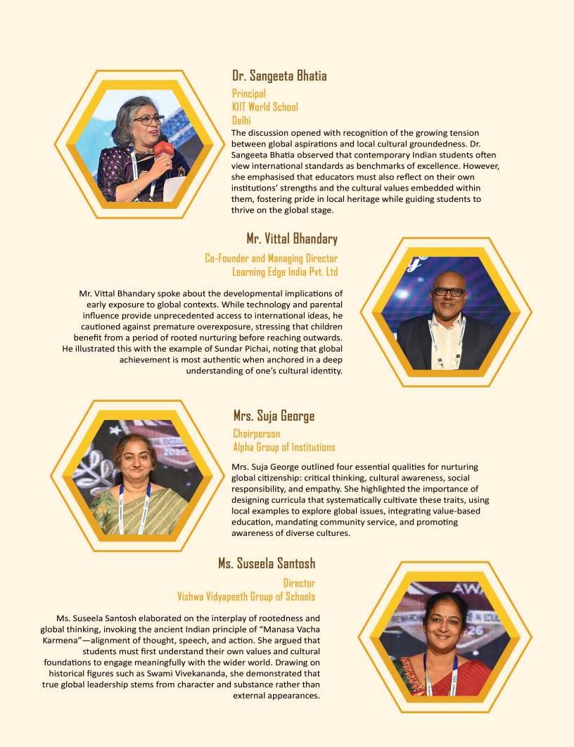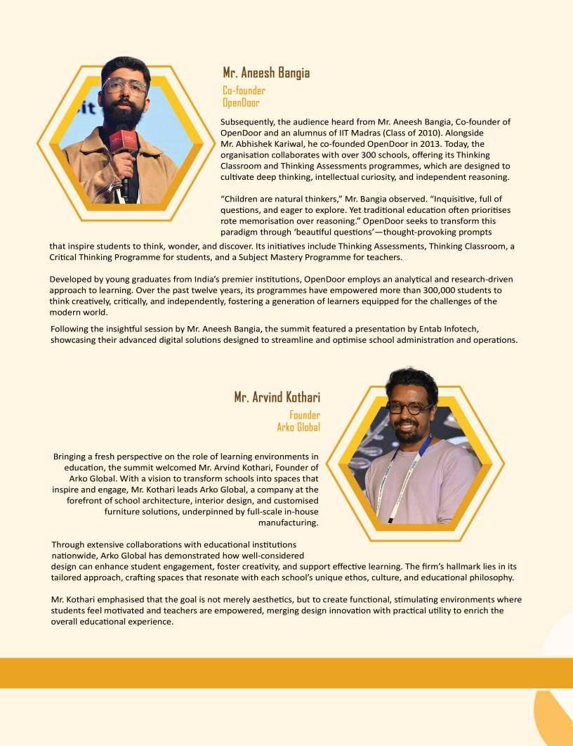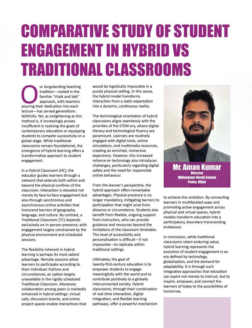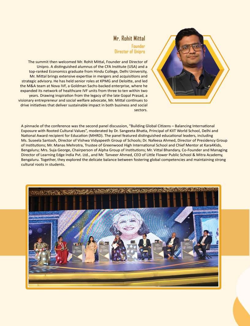Adistinguishedhighlightofthis editionistheIndiaSchoolMerit Awardsgallery,whichproudly showcasesEducationTitans, DynamicPrincipals,Influential Leadersandotherpioneeringfigures whoseunwaveringcommitment continuestoredefineeducational benchmarks.Theirvisionary stewardshipandrelentlesspursuitof excellencehavenotonlytransformed institutionsbuthavealsocontributed meaningfullytotheevolutionof educationatlarge.Wesalutethese changemakerswhoselegacieswill undoubtedlyresonateacross generations.
