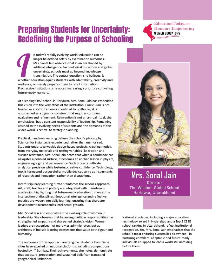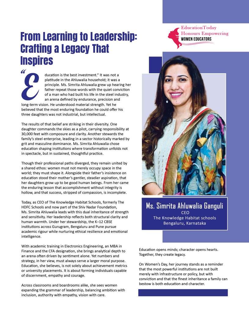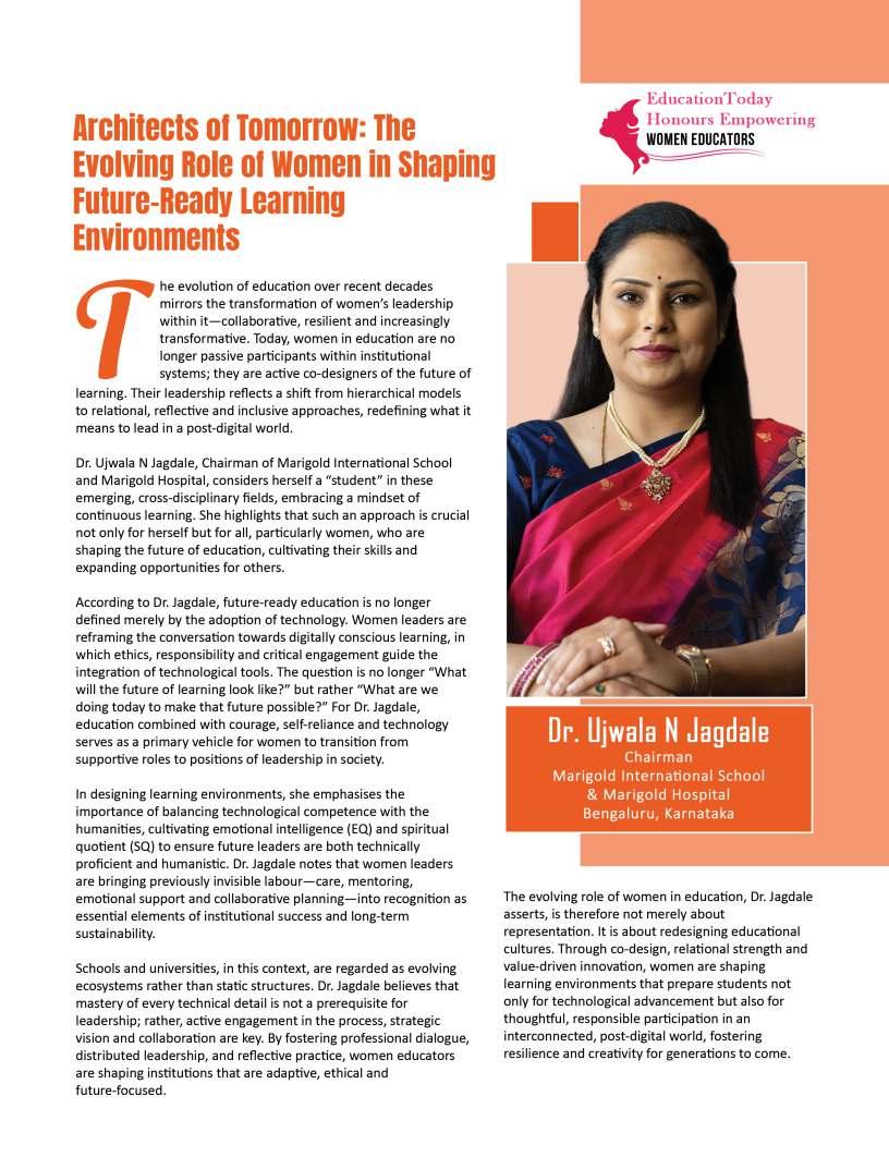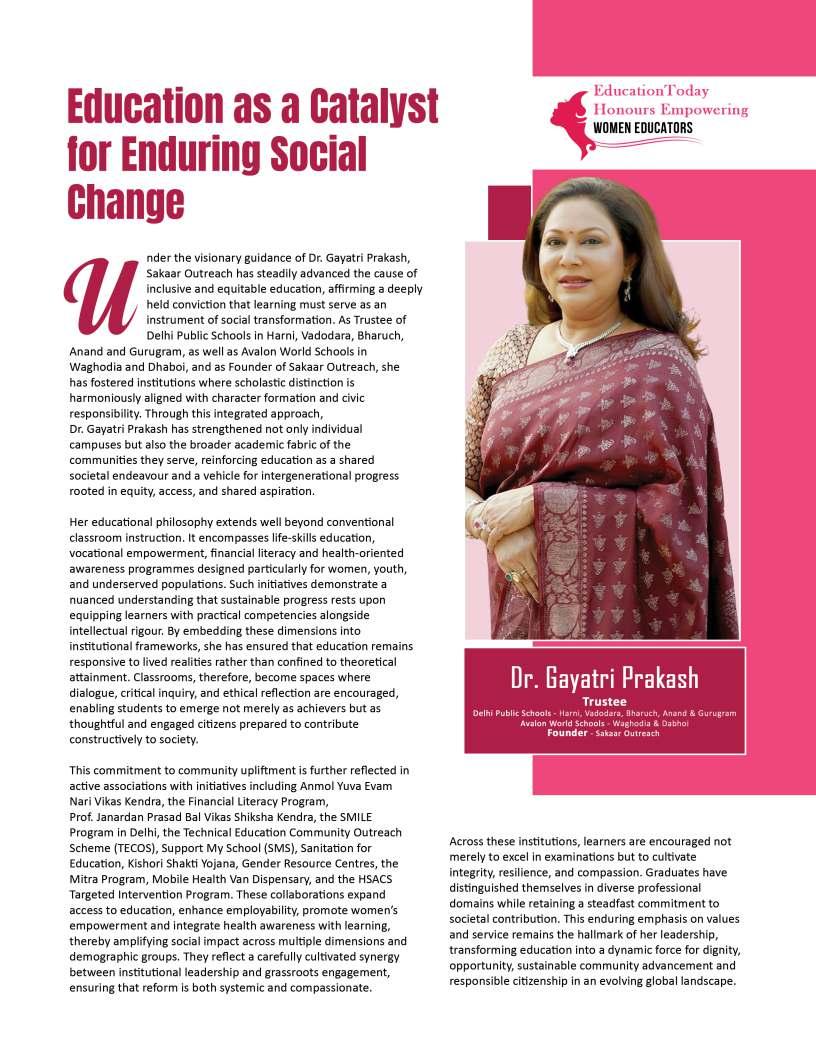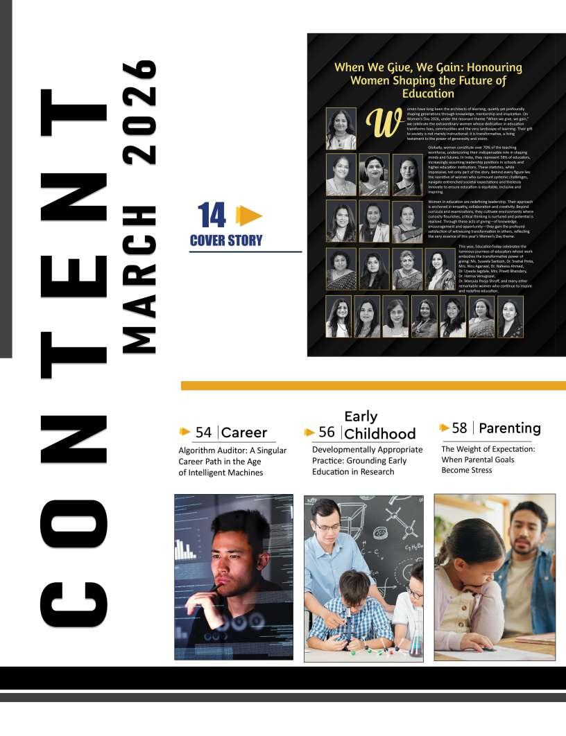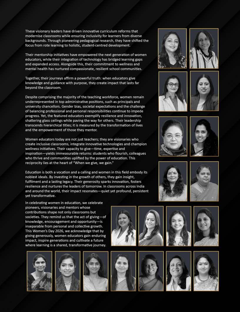 powerfullessonsareoften thosefreelyshared.On Women'sDay2026,EducationToday celebratestheextraordinarywomen whoexemplifythistruth,reminding usthatingivingknowledge, guidance,andencouragement,we cultivatenotonlyothers'potentialbut ourown.Thisyear'stheme,“When wegive,wegain,”reflectsthe profoundreciprocityattheheartof education—acycleofgenerositythat shapesfutures,transforms communities,andleavesanenduring legacy