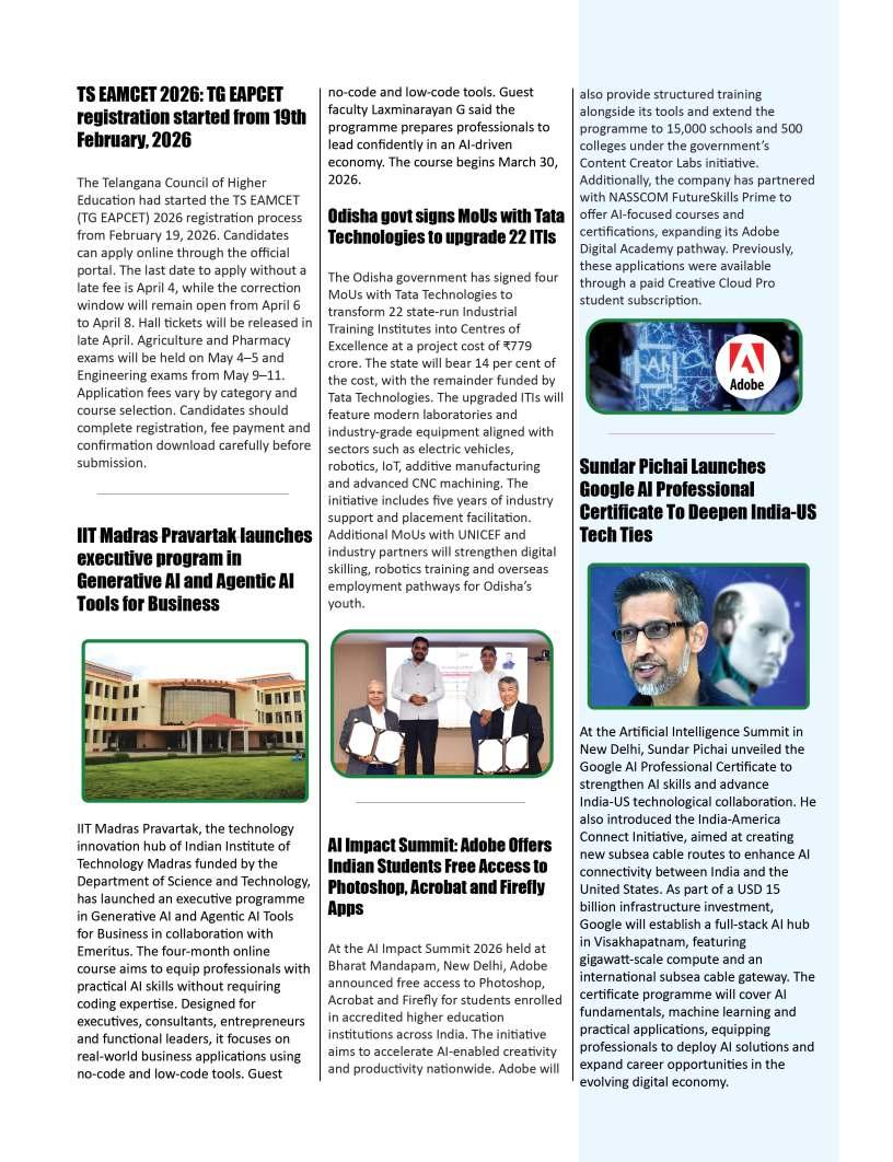 Annual Subscription to our Magazine (12 issues) - Rs. 6000 admin@educationtoday.co