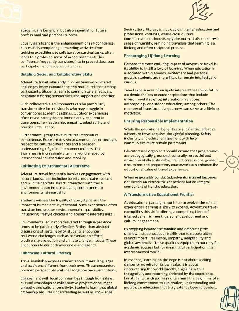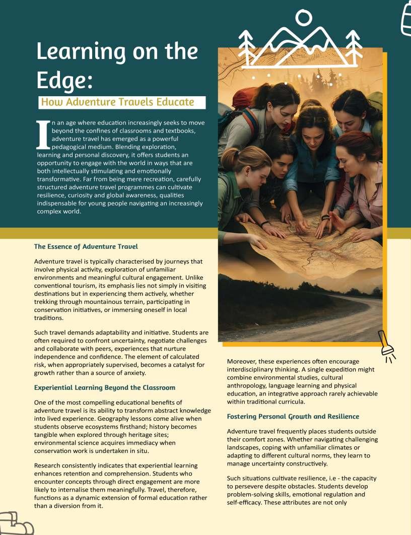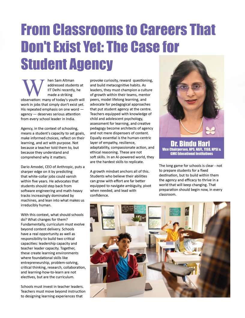 Thiseditionalsoexploresthe expandinghorizonsofmodern education—fromcareerpathwaysand holisticwellbeingtocreativelearning approaches,technologicalintegration, andthearts.Webringyou perspectivesfromthoughtleadersand innovators,offeringtools,ideas,and inspirationtonavigatetheevolving landscapeofteachingandlearning. Everystoryinthisissueunderscores acentraltruth:whenwegive generously,wesparkgrowth, resilience,andtransformation—not onlyinothers,butinourselves.