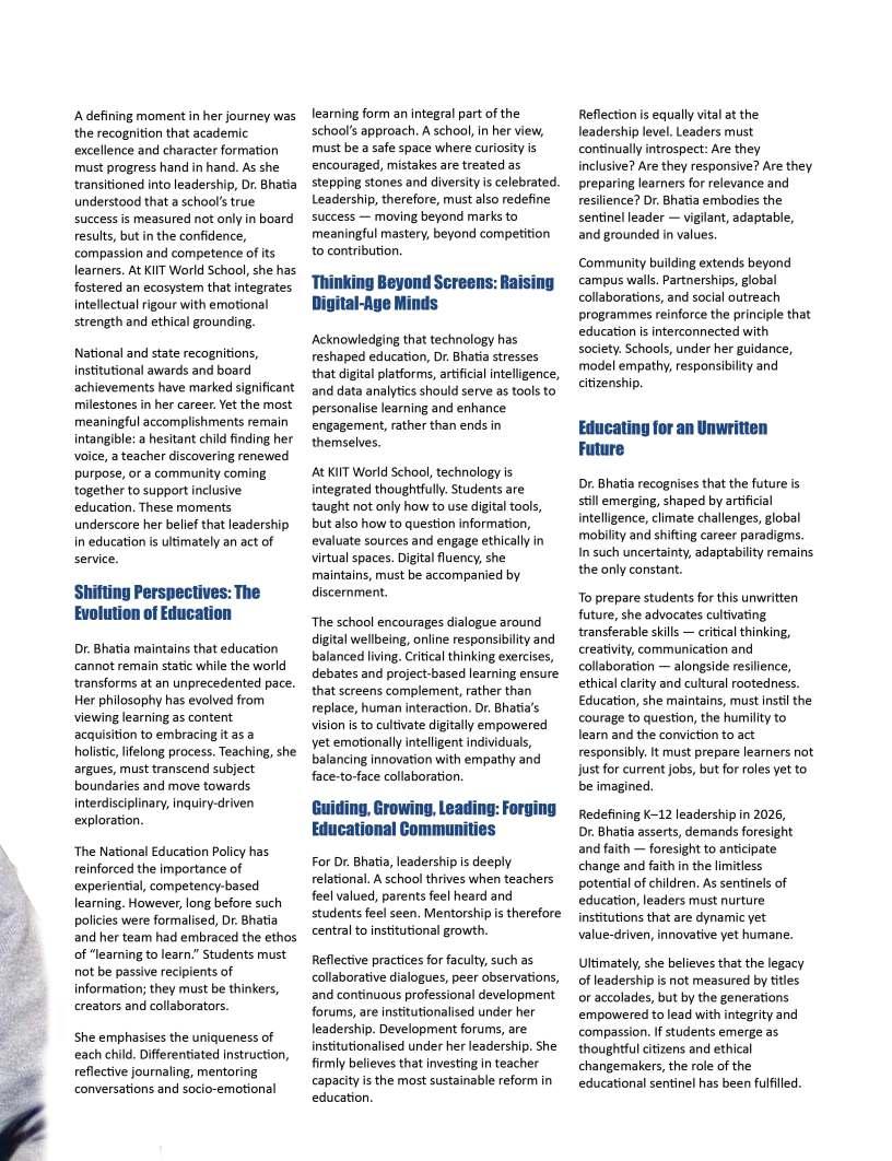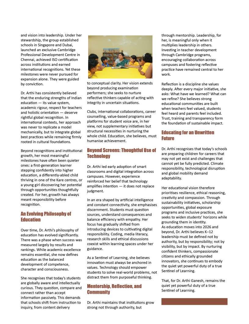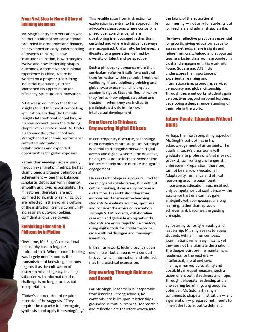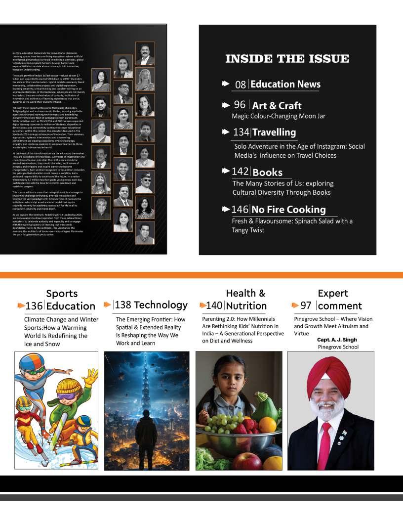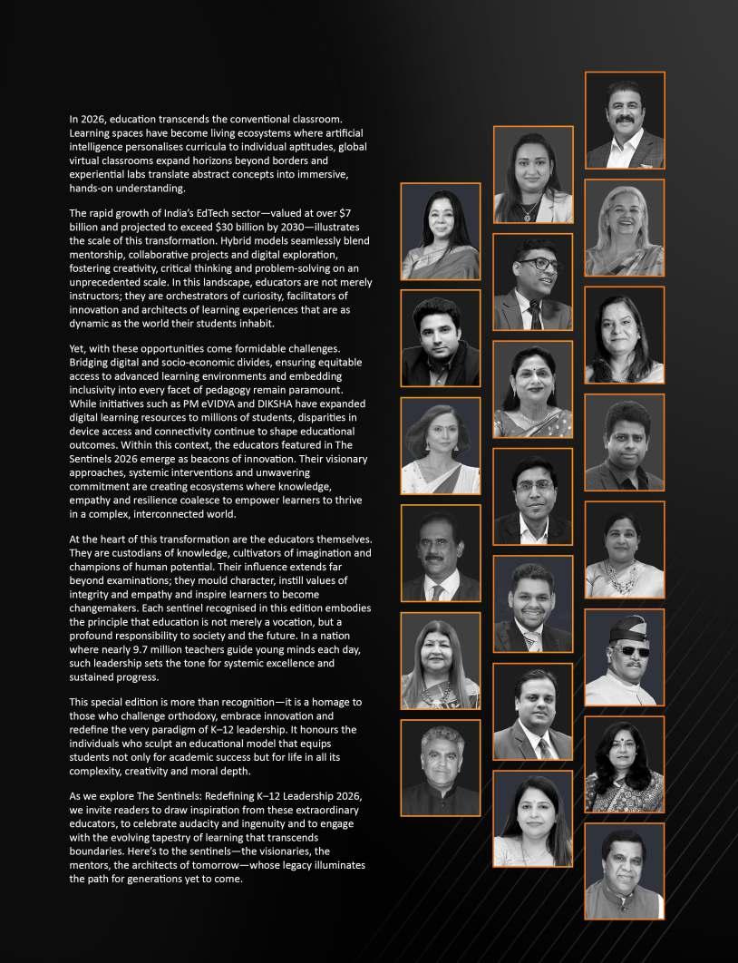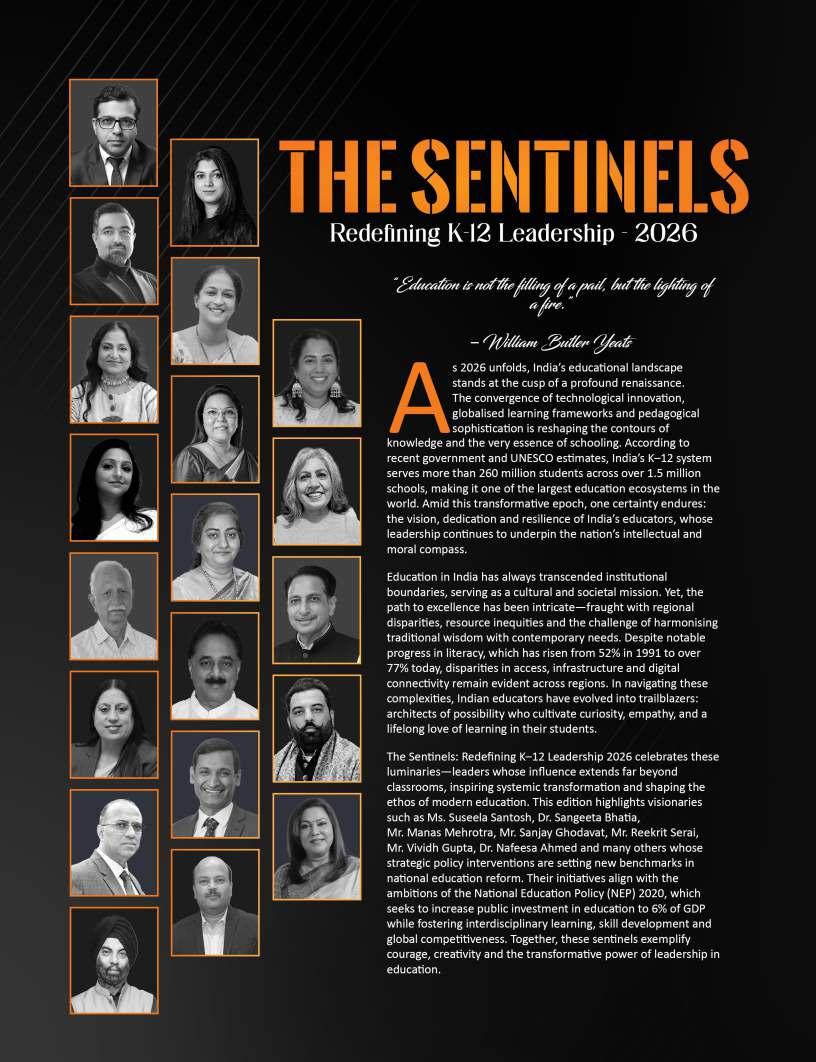OurFebruary2026edition:The Sentinelsshinesaspotlighton individualsandinstitutionsthatare redefiningwhatmeaningfuleducation lookslikeinthemodernworld.From visionaryschoolleaderstopioneering educatorswhoareintroducing innovativelearningmodels,thisissue highlightsthestoriesofthosewhoare pushingboundariesandcreating impactinclassroomsand communitiesalike.Theseleaders representthespiritoftransformation