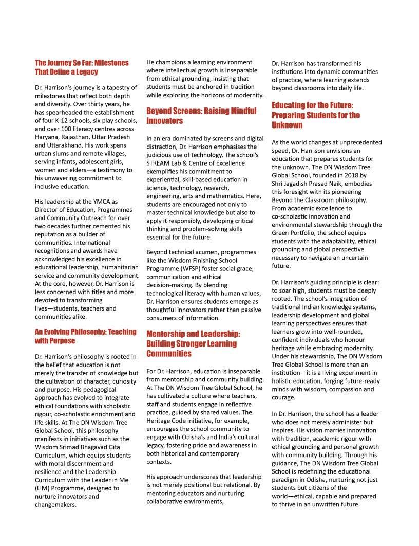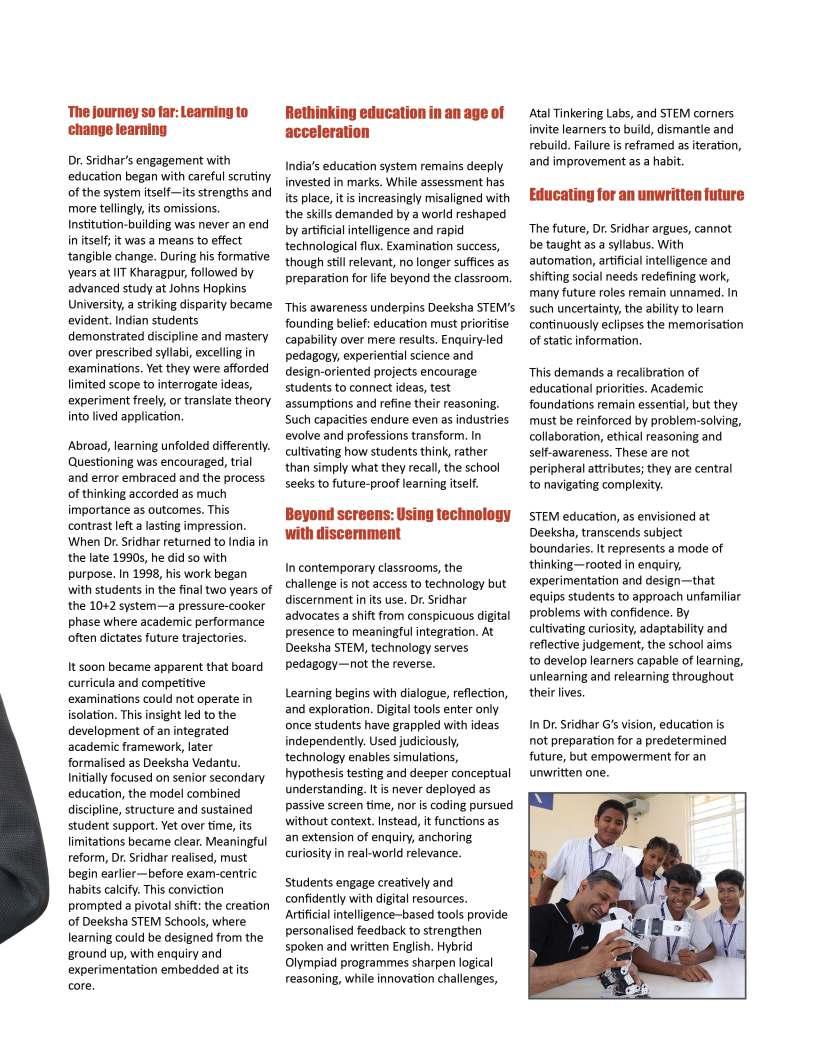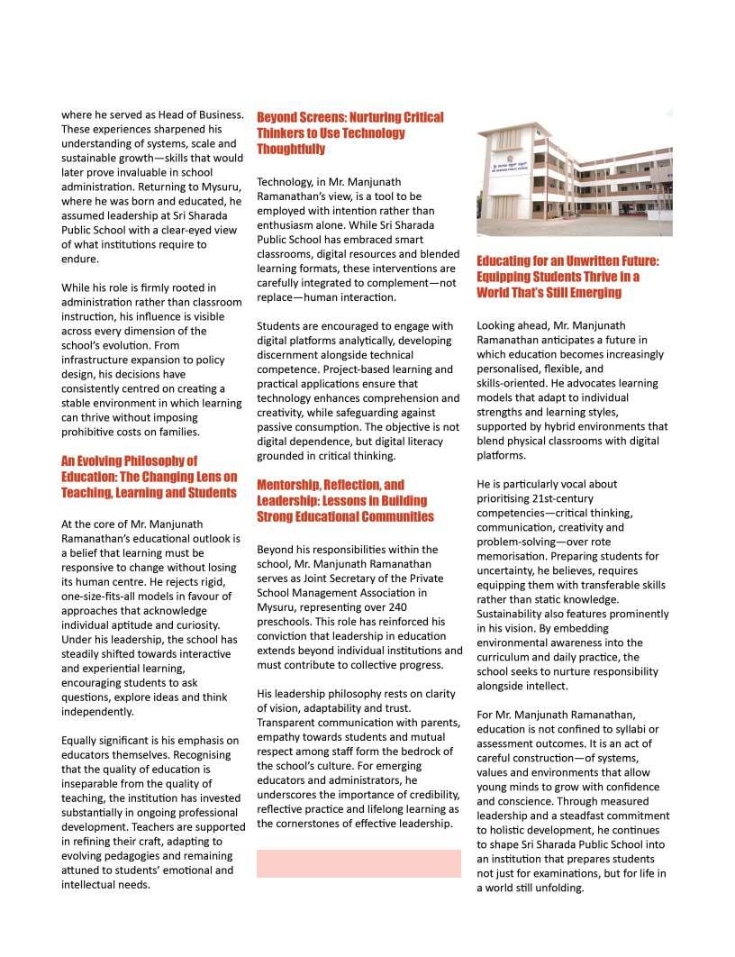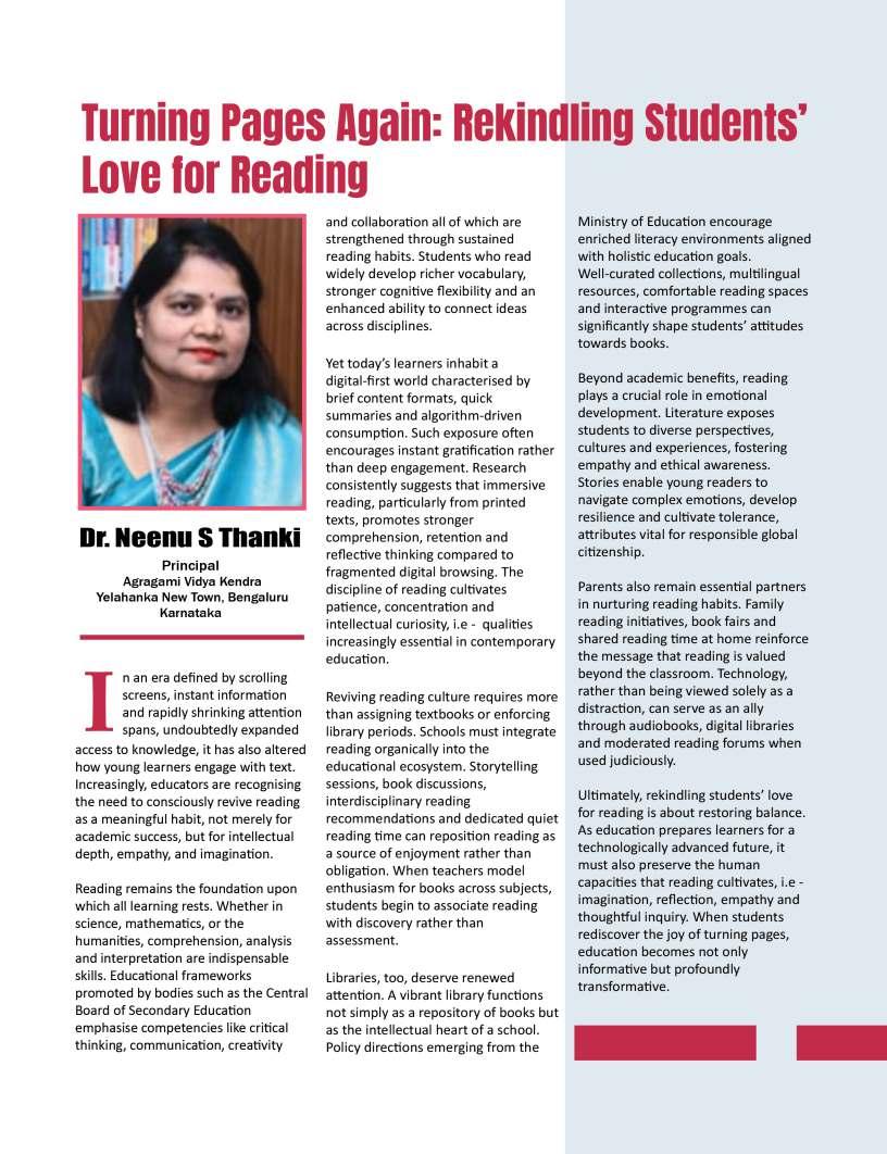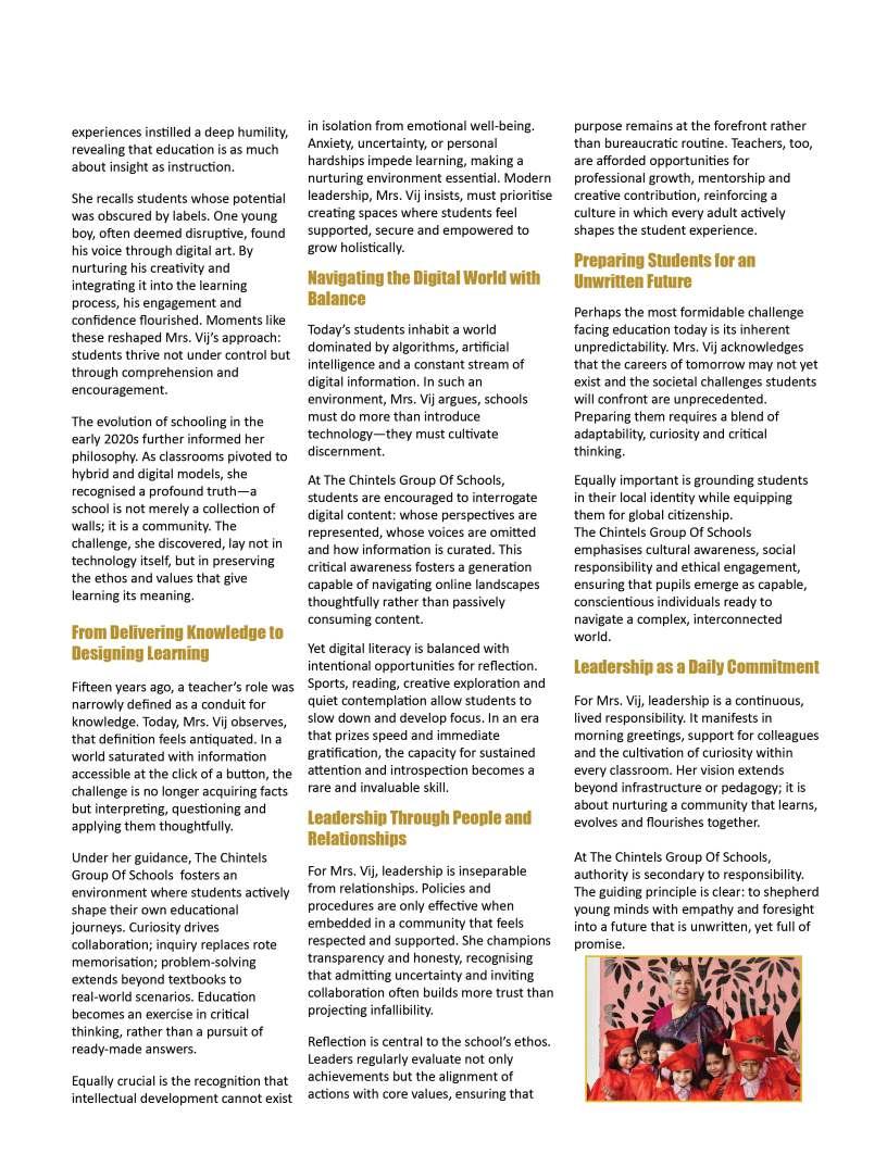 OurFebruary2026edition:The Sentinelsshinesaspotlighton individualsandinstitutionsthatare redefiningwhatmeaningfuleducation lookslikeinthemodernworld.From visionaryschoolleaderstopioneering educatorswhoareintroducing innovativelearningmodels,thisissue highlightsthestoriesofthosewhoare pushingboundariesandcreating impactinclassroomsand communitiesalike.Theseleaders representthespiritoftransformation