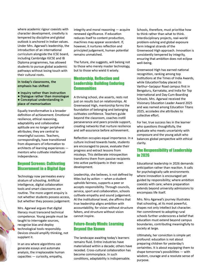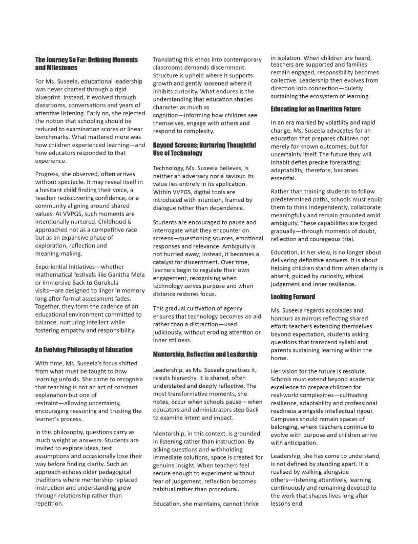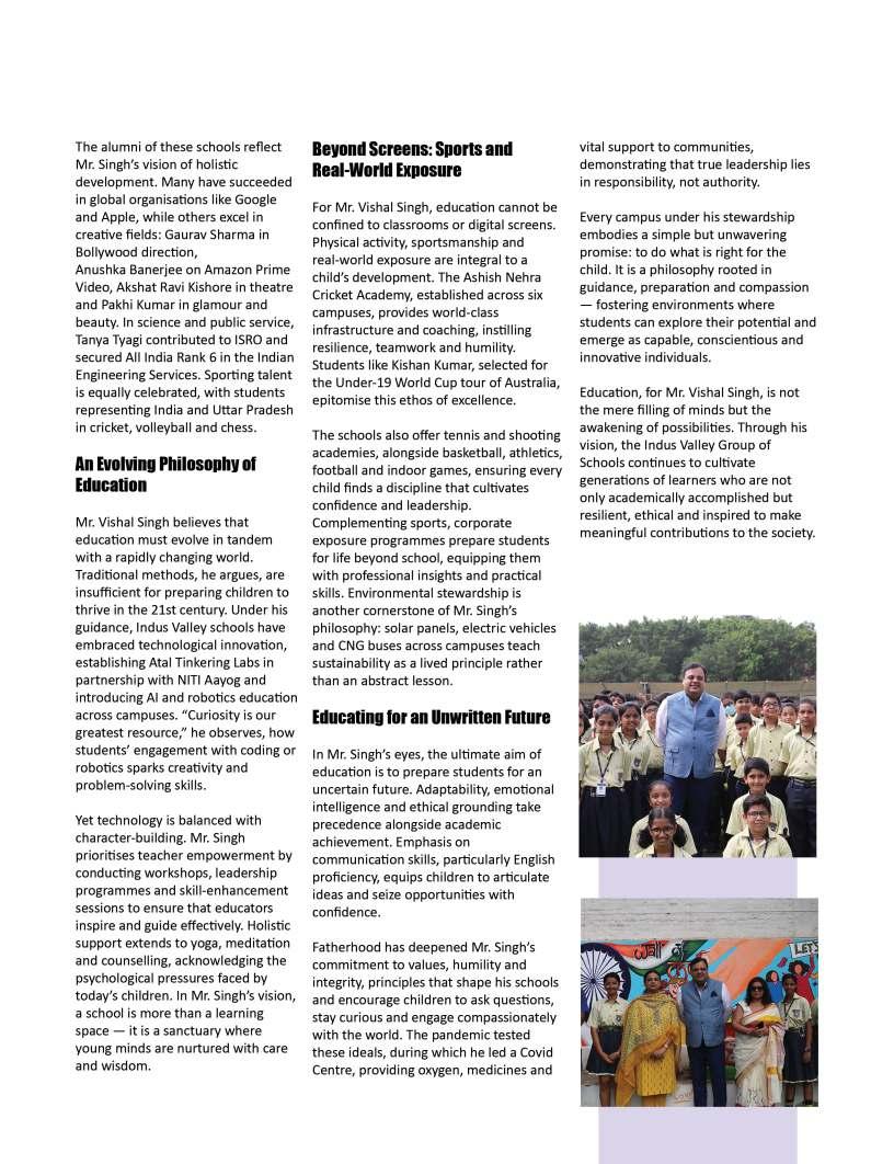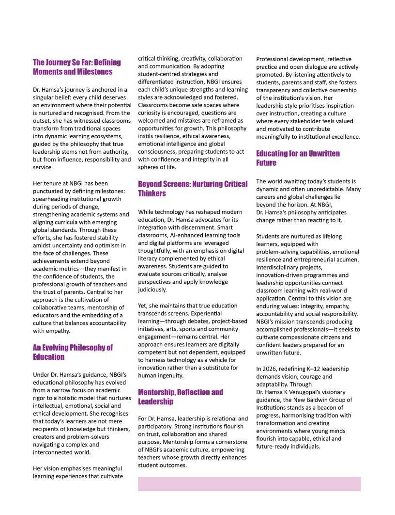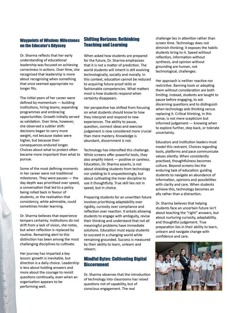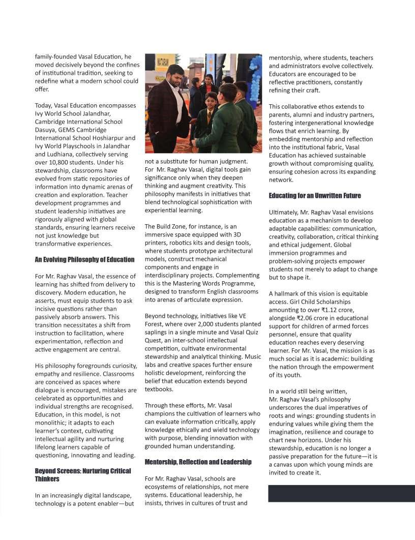 OurFebruary2026edition:The Sentinelsshinesaspotlighton individualsandinstitutionsthatare redefiningwhatmeaningfuleducation lookslikeinthemodernworld.From visionaryschoolleaderstopioneering educatorswhoareintroducing innovativelearningmodels,thisissue highlightsthestoriesofthosewhoare pushingboundariesandcreating impactinclassroomsand communitiesalike.Theseleaders representthespiritoftransformation