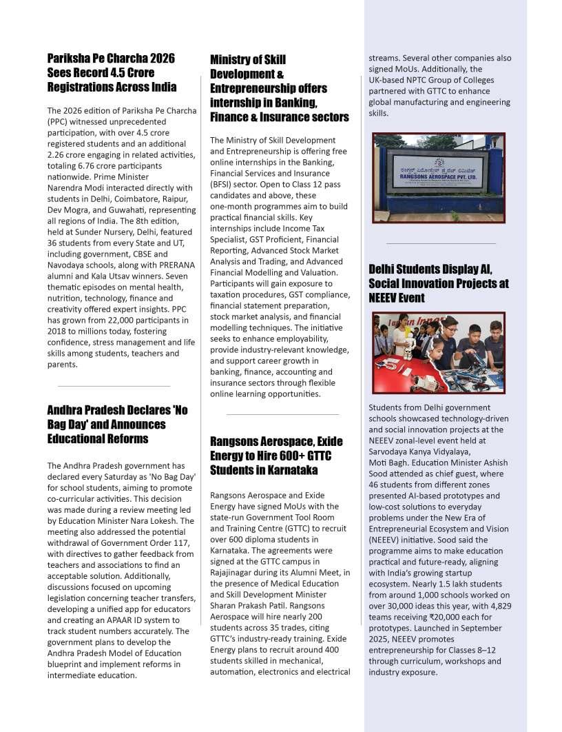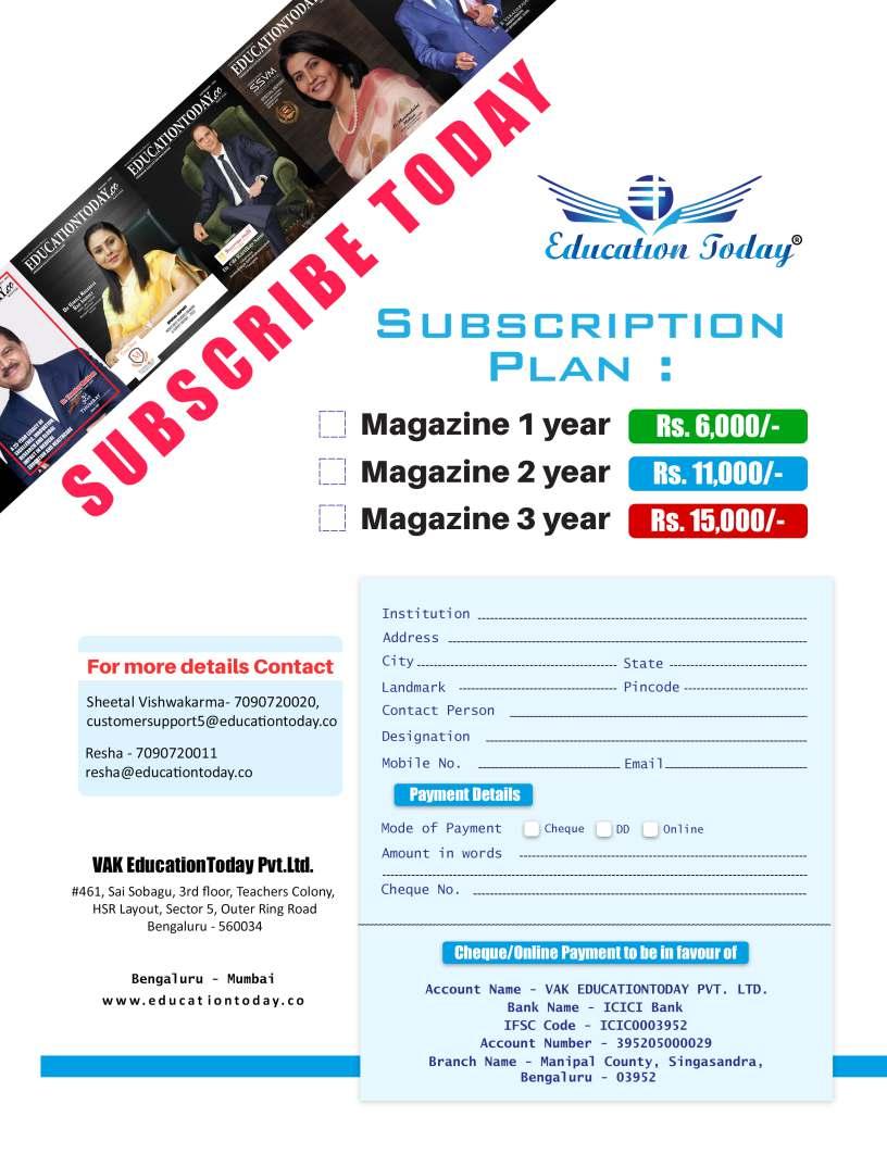 Annual Subscription to our Magazine (12 issues) - Rs. 6000 admin@educationtoday.co