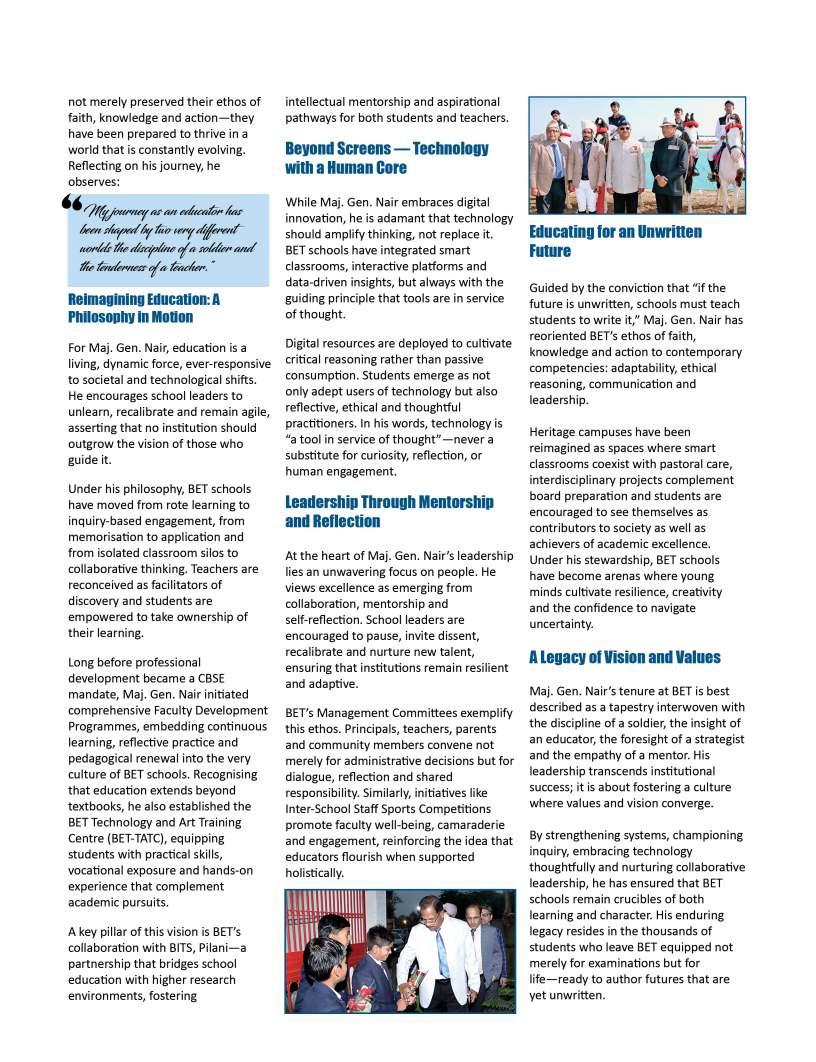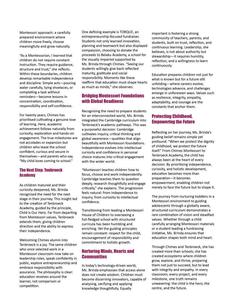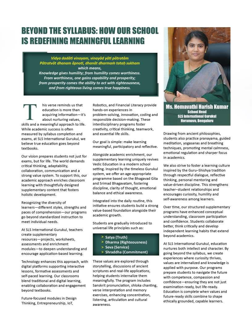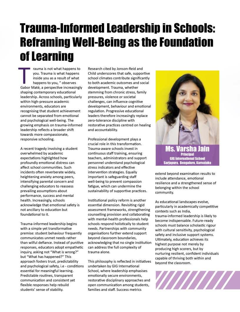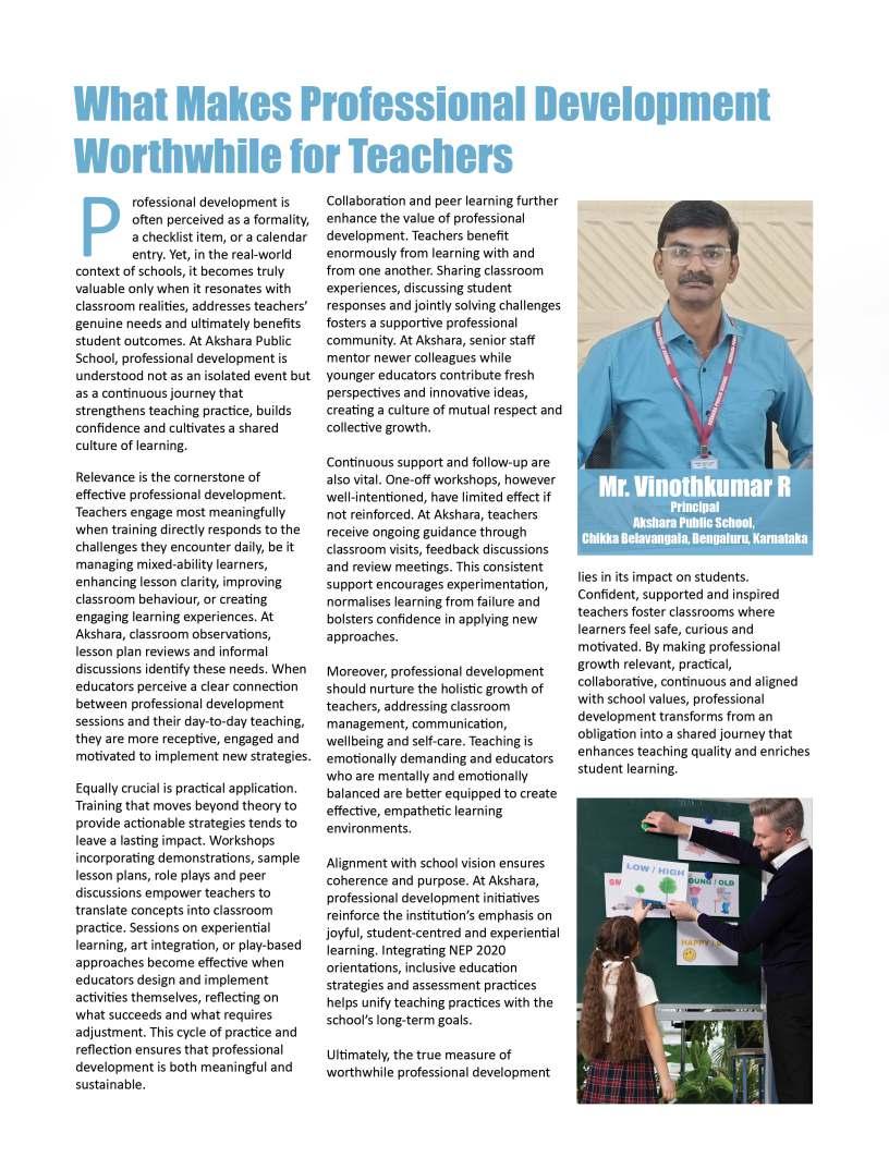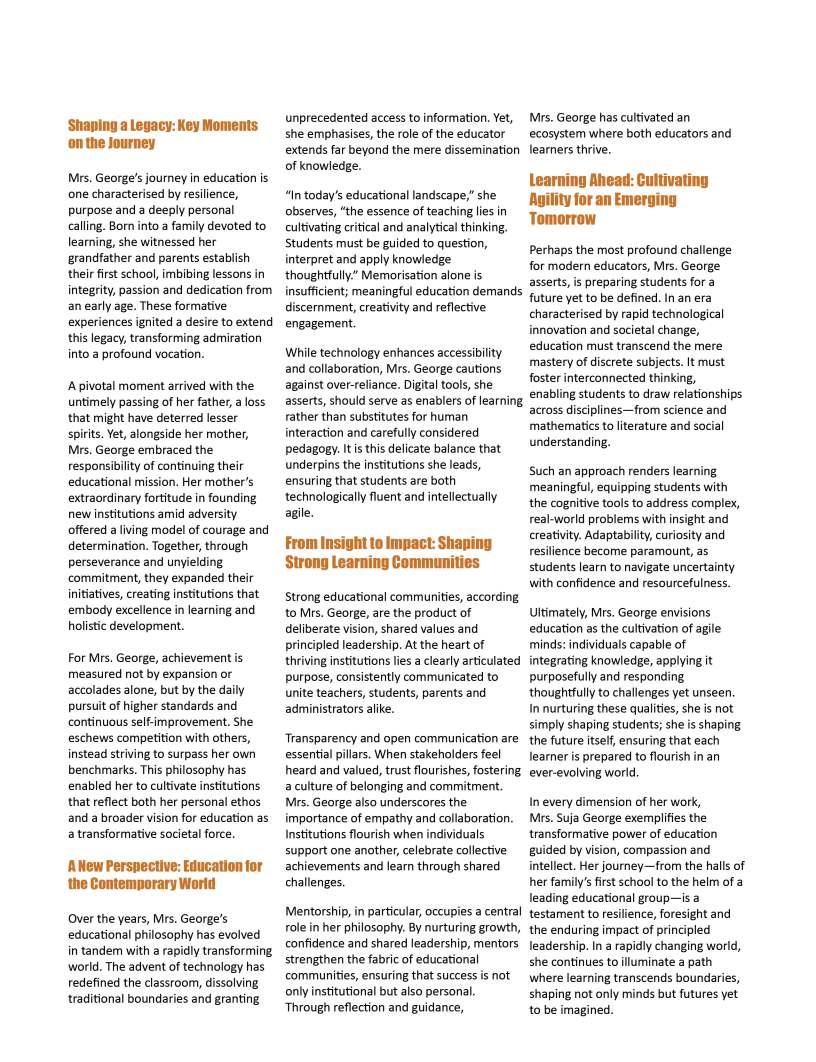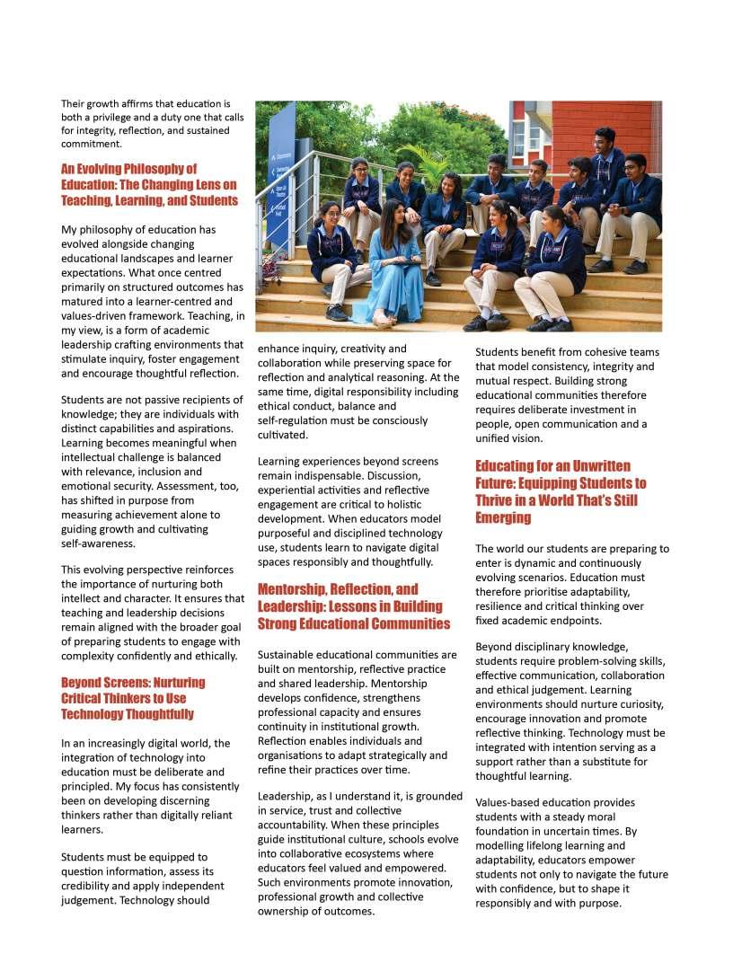 Educationisultimatelyashared journey,builtuponcollaboration, dedication,andanunwaveringbelief inthepotentialofeverychild.Asyou explorethisissue,wehopethestories andinsightswithinthesepagesignite freshideasandrenewedinspiration forthepathahead.