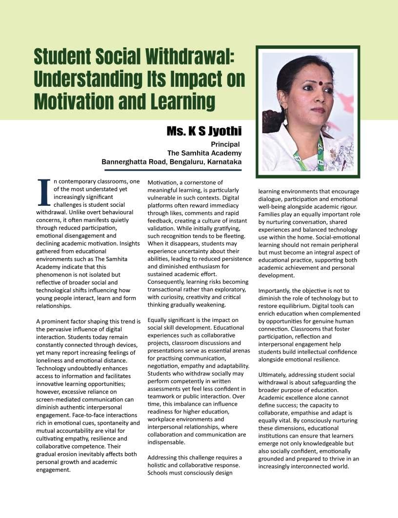 Asalways,ourendeavouristo presentperspectivesthatinform, inspire,andempowerourreaderseducators,schoolleaders,parents, andstudentsalike.Bysharing experiencesandideasfromacrossthe educationcommunity,wehopeto encouragemeaningfuldialogueabout thefutureoflearningandleadership.