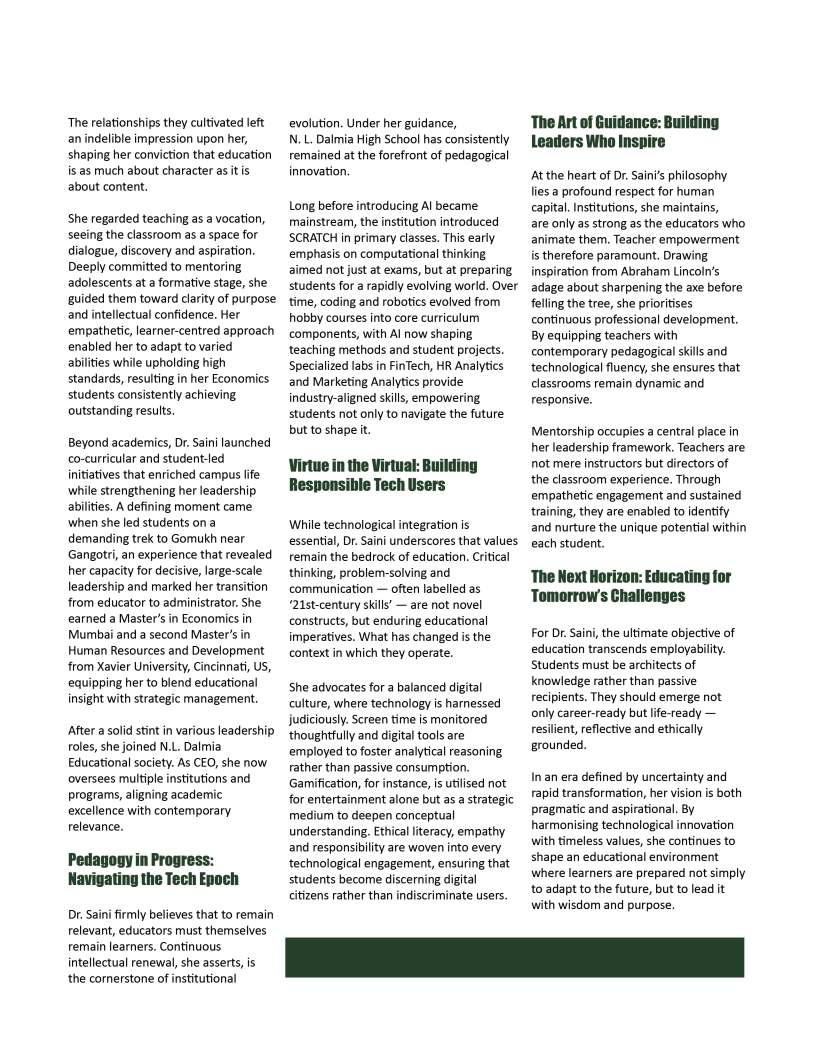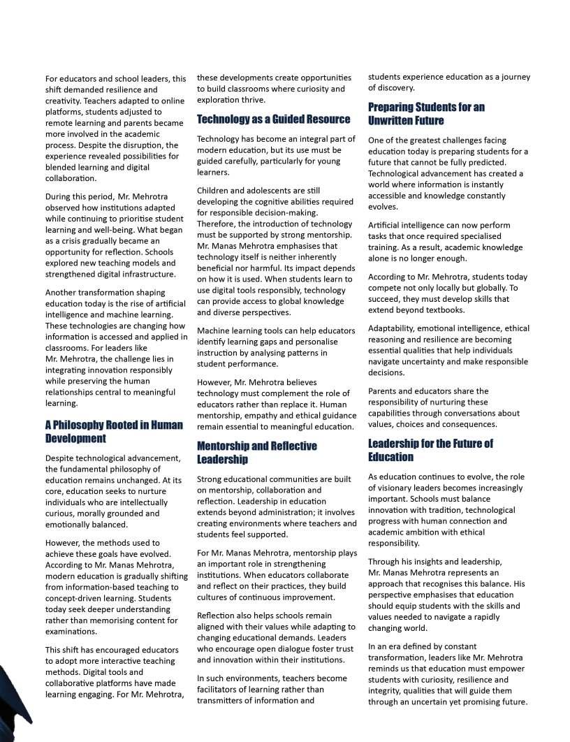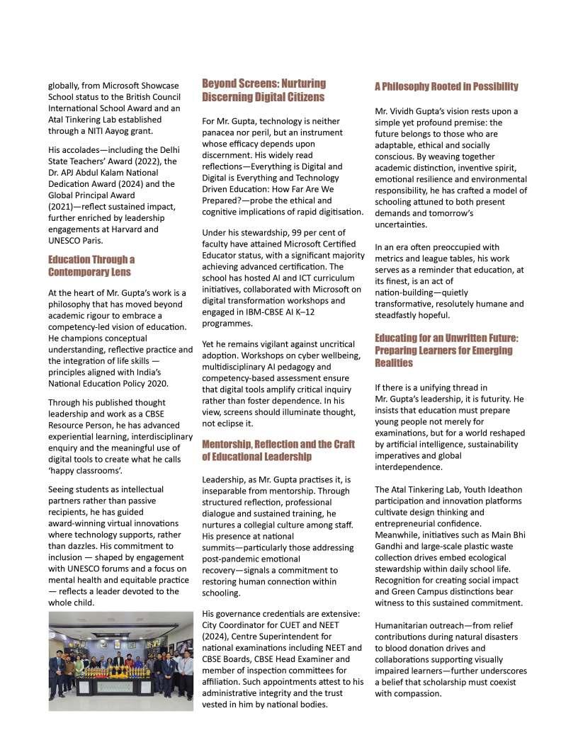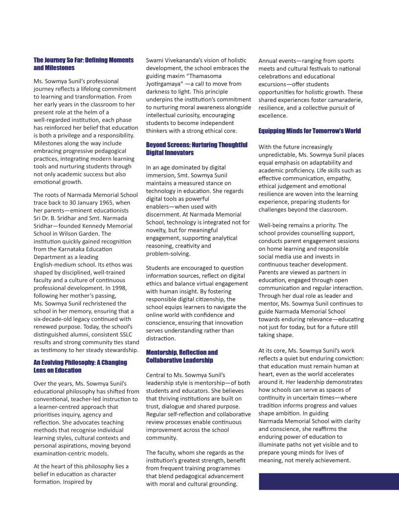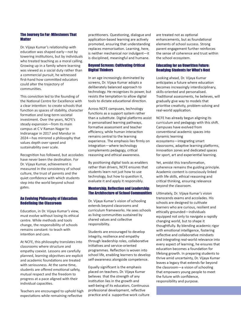 Acrossthecountry,countless educatorscontinuetodemonstrate howvision,perseverance,and empathycantransformthelearning experience.Theirjourneysremindus thateducationisnotmerelyabout impartingknowledgebutabout inspiringamindsetthatvalues inquiry,resilience,andlifelong learning.AtEducationToday,we believethatrecognisingsuch leadershipisessential,forit encouragesaculturewhere excellenceineducationisboth celebratedandshared.