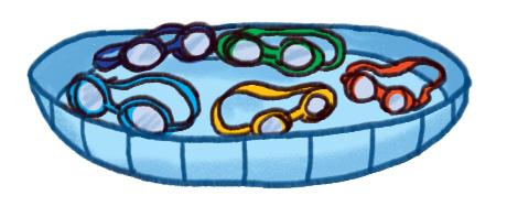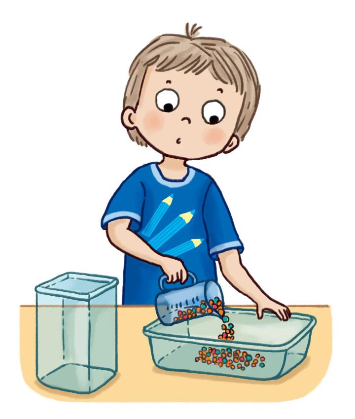 Tarvitaan: hajotuskone, 6 helmeä ja pelinappulat