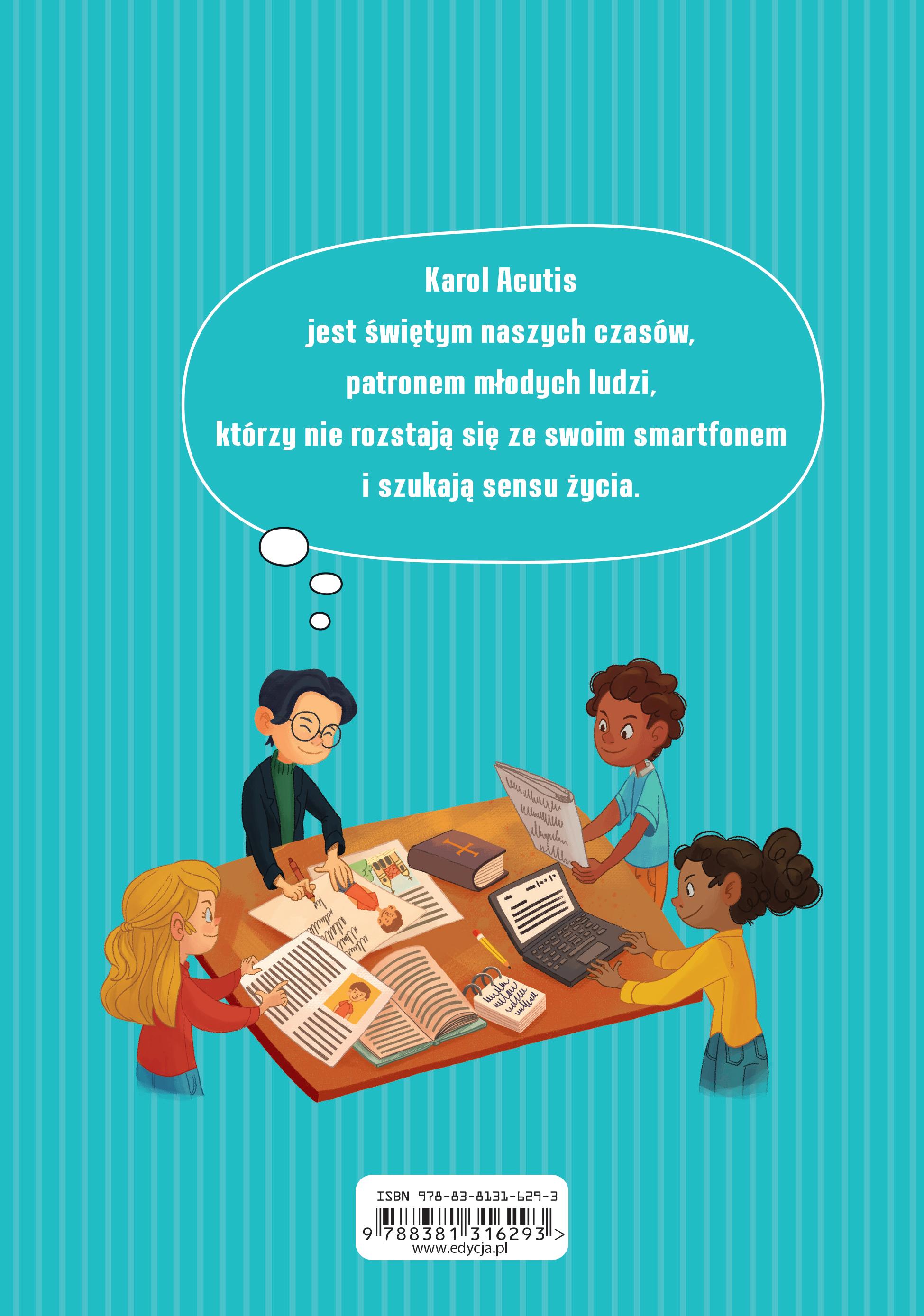 Karol umarł na białaczkę, gdy miał piętnaście lat. Już czternaście lat po swojej śmierci, 12 października 2020 roku, został ogłoszony błogosławionym, czyli osobą, przez której wstawiennictwo możemy się modlić do Boga. Aby jeszcze więcej osób mogło dowiedzieć się o Karolu, Kościół zdecydował się ogłosić go świętym. Obrazy z wizerunkiem Karola lub jego figury można zobaczyć w wielu kościołach. Znajdują się obok świętych biskupów, kapłanów, królów i księżniczek, którzy żyli bardzo dawno temu. Gdy na nie spoglądamy, Karol uśmiecha się do nas w swoich trampkach oraz koszulce polo i zaprasza nas, abyśmy zaprzyjaźnili się jeszcze bardziej z Jezusem.
