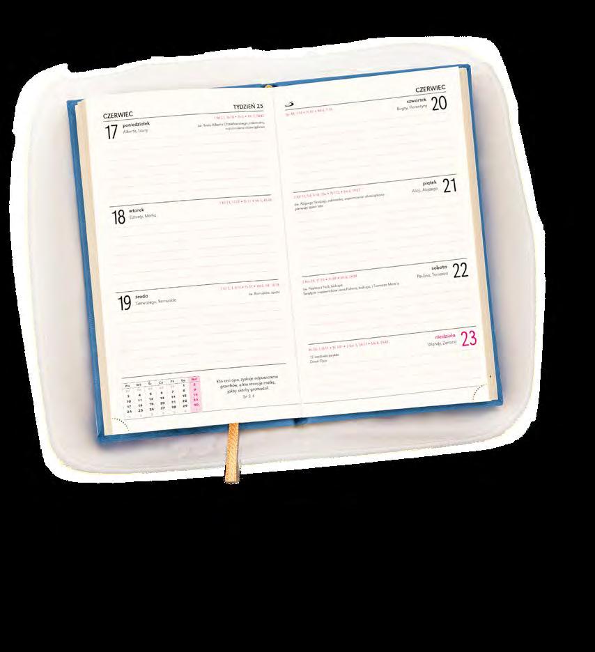 Kalendarze to nasza pasja – dzięki wieloletniemu doświadczeniu, nowoczesnym technikom zdobienia i wykonania oraz zaangażowaniu pracowników spełniamy oczekiwania naszych klientów. Przygotowujemy produkty dopracowane w każdym calu. Niniejszy katalog przedstawia efekty naszej pracy – znajdą tu Państwo różnorodne projekty, od stonowanych, delikatnych wzorów po wyraźne, pełne energii modele o nowoczesnej kolorystyce. Szeroki wybór pozwala na dopasowanie kalendarzy do Państwa indywidualnych potrzeb.