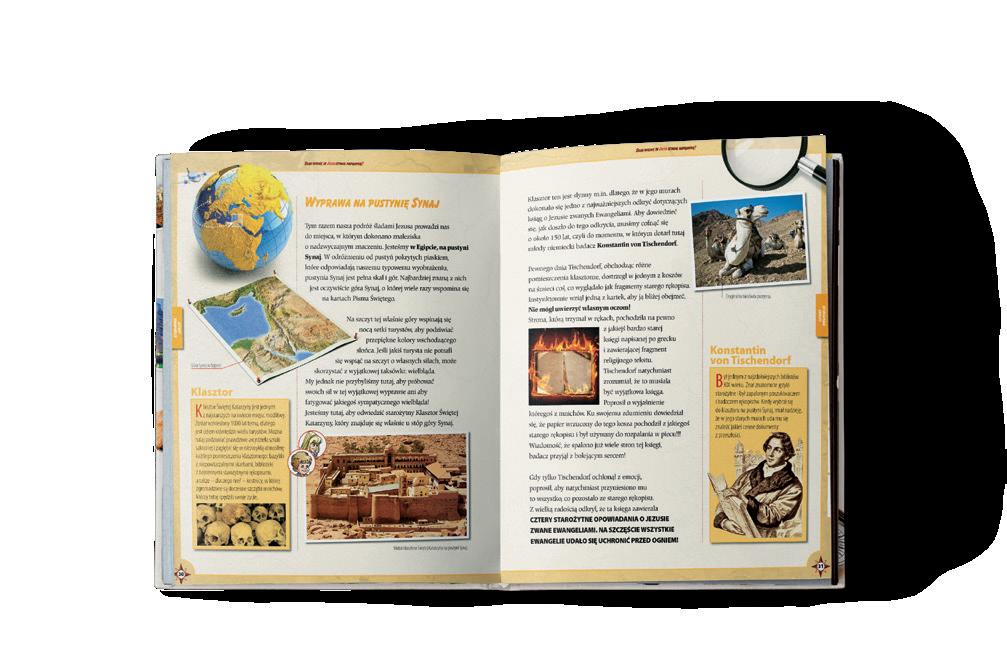 Razem z Autorką tego bogato ilustrowanego albumu wybierz się w pełną przygód podróż śladami Jezusa przez morza, pustynie, zabytkowe miasta i wykopaliska archeologiczne. Szlak wiedzie od góry Synaj aż po USA. Krok po kroku, jak wytrawny detektyw, odkrywaj źródła historyczne – starożytne rękopisy, mapy i dokumenty. Dzięki zdobytej w ten sposób wiedzy przekonasz się, że Jezus naprawdę żył ponad 2000 lat temu i przemierzał ścieżki dzisiejszego Izraela. Zobaczysz też, jak niezmiennie aktualne jest Boże przesłanie.