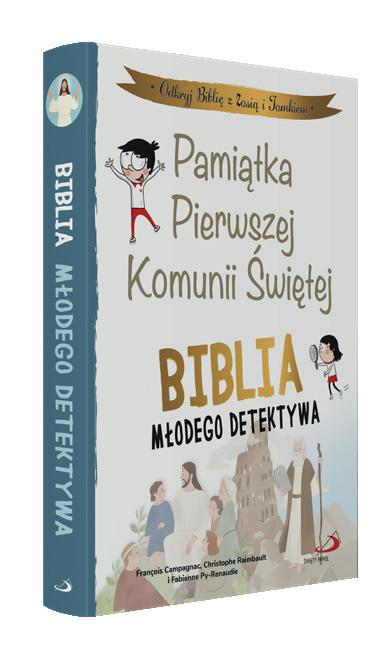 Lektura Biblii młodego detektywa jest jak wielkie śledztwo! Jeśli chcesz poznać historie niezwykłych postaci, dołącz do Zosi i Tomka i odkryj Pismo Święte. Zawiera 14 najpopularniejszych historii ze Starego Testamentu i 14 z Nowego Testamentu. Na początku każdego rozdziału znajduje się minikomiks z zabawnymi dialogami, który wprowadza czytelników w tematykę tekstu biblijnego. Obok opowieści biblijnej, napisanej przystępnym językiem, znajduje się fragment oryginalnego tekstu, aby przyzwyczajać najmłodszych do lektury Pisma Świętego. Na marginesach książki Zosia i Tomek wyjaśniają najważniejsze trudne słowa, a także wskazują inne fragmenty biblijne, związane z czytanym tekstem. Ponadto na końcu każdego rozdziału znajdują się strony informacyjne z bardzo ciekawymi wiadomościami i ilustracjami.