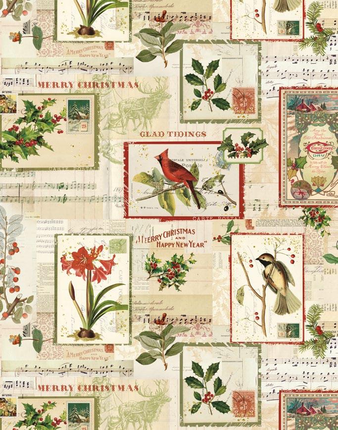 Backing: Lt Cream Ditsy Floral Y4490-2 Red Holly Stamps Y4488-82