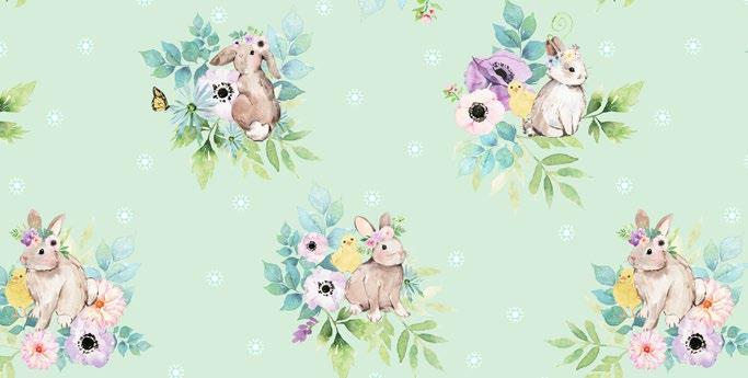 Packed Floral**: Lt Mint Bunny Scenes Y5035-109