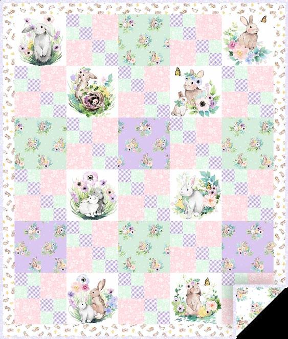 *Our version uses 'Pink' for Inner Border & Small Squares in quilt top & separates out the Binding. **Fussy-cut (18) 5" squares by centering on the Bunny Scene motifs.