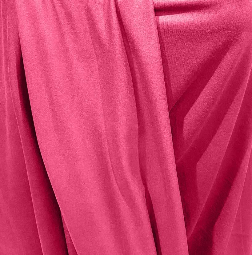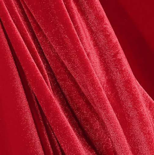 A luxurious looking velvet with a beautiful drape and stretch in all directions. Used for comfortable form-fitting garments such as dresses, skirts, leggings, activewear, and dance costumes.