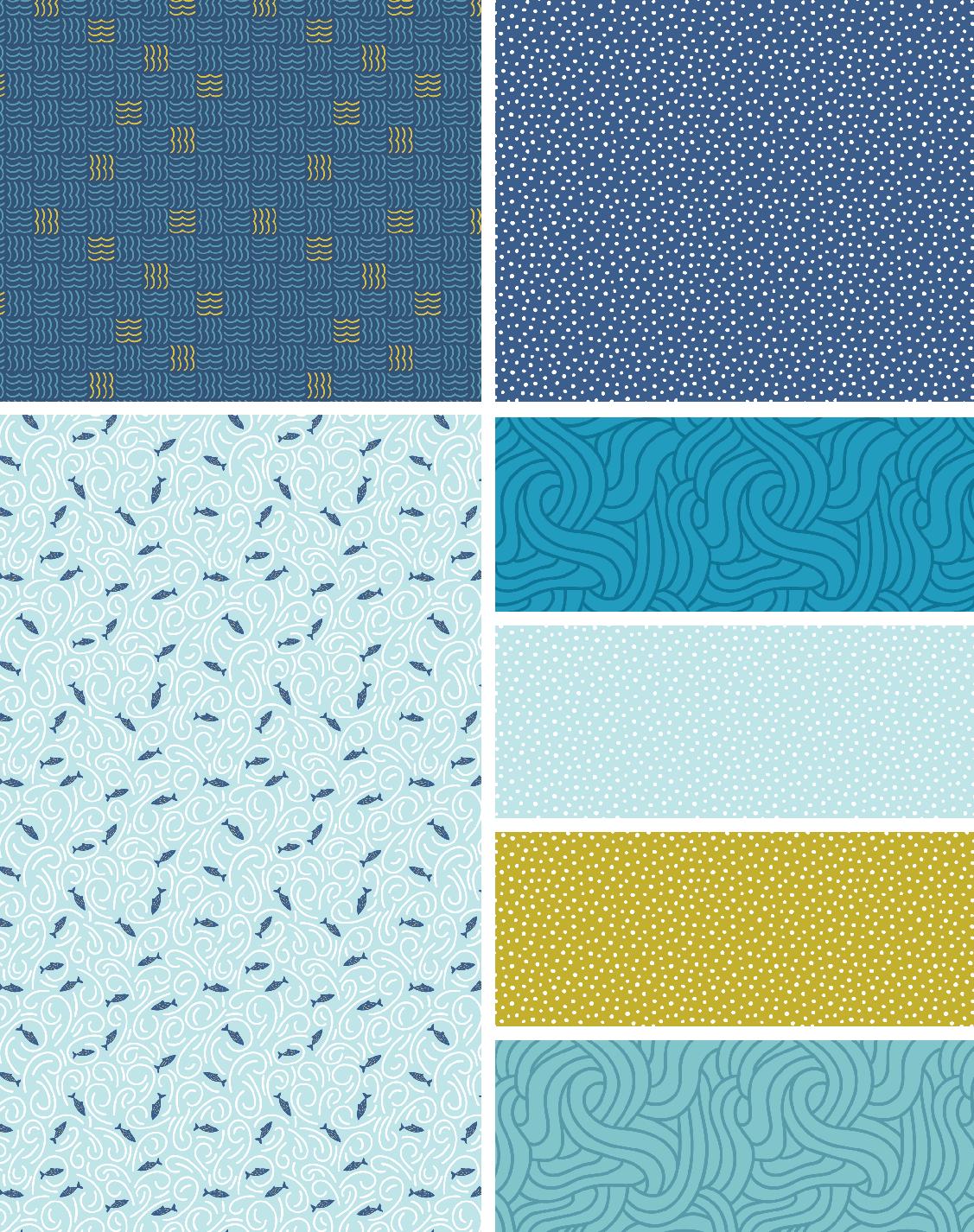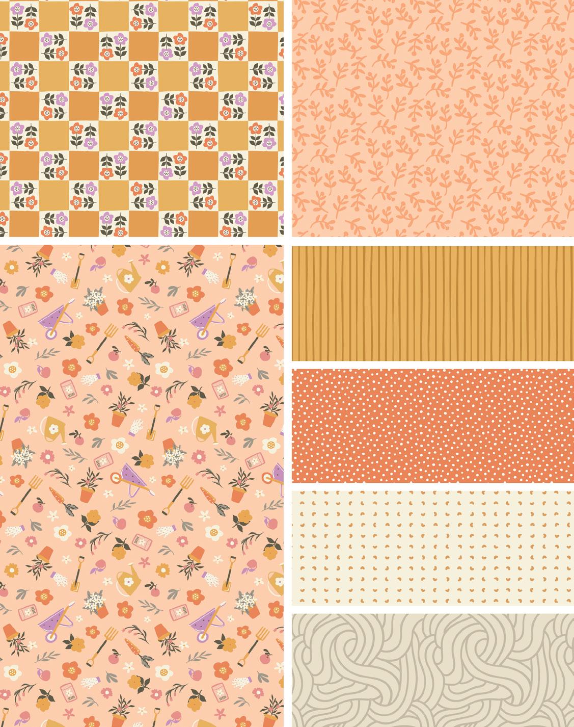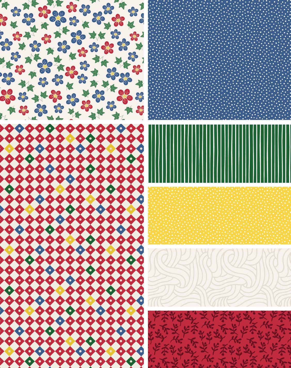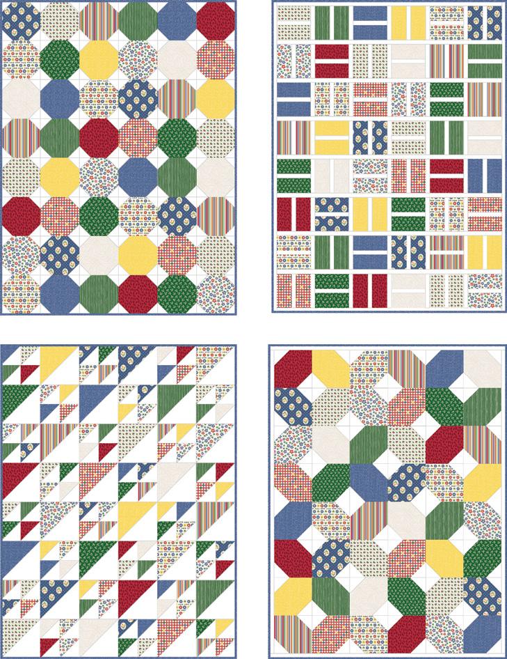 Our free, beginner friendly quilt patterns are designed to use fat quarters of all 12 prints in a collection. They are completely randomized and you can freely layout out the prints as you please. Or you can refer to our suggested digital layout version on the collection page.