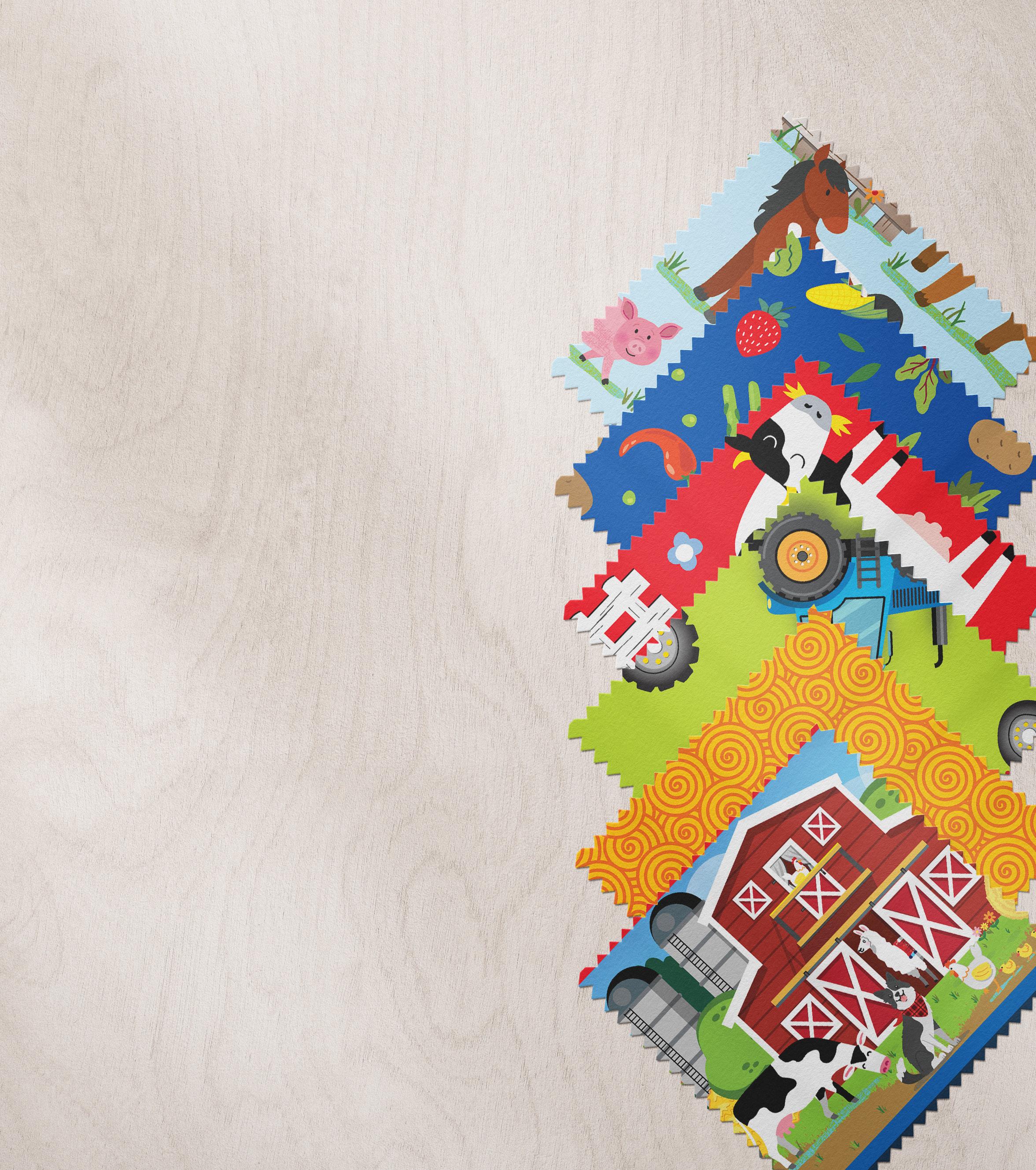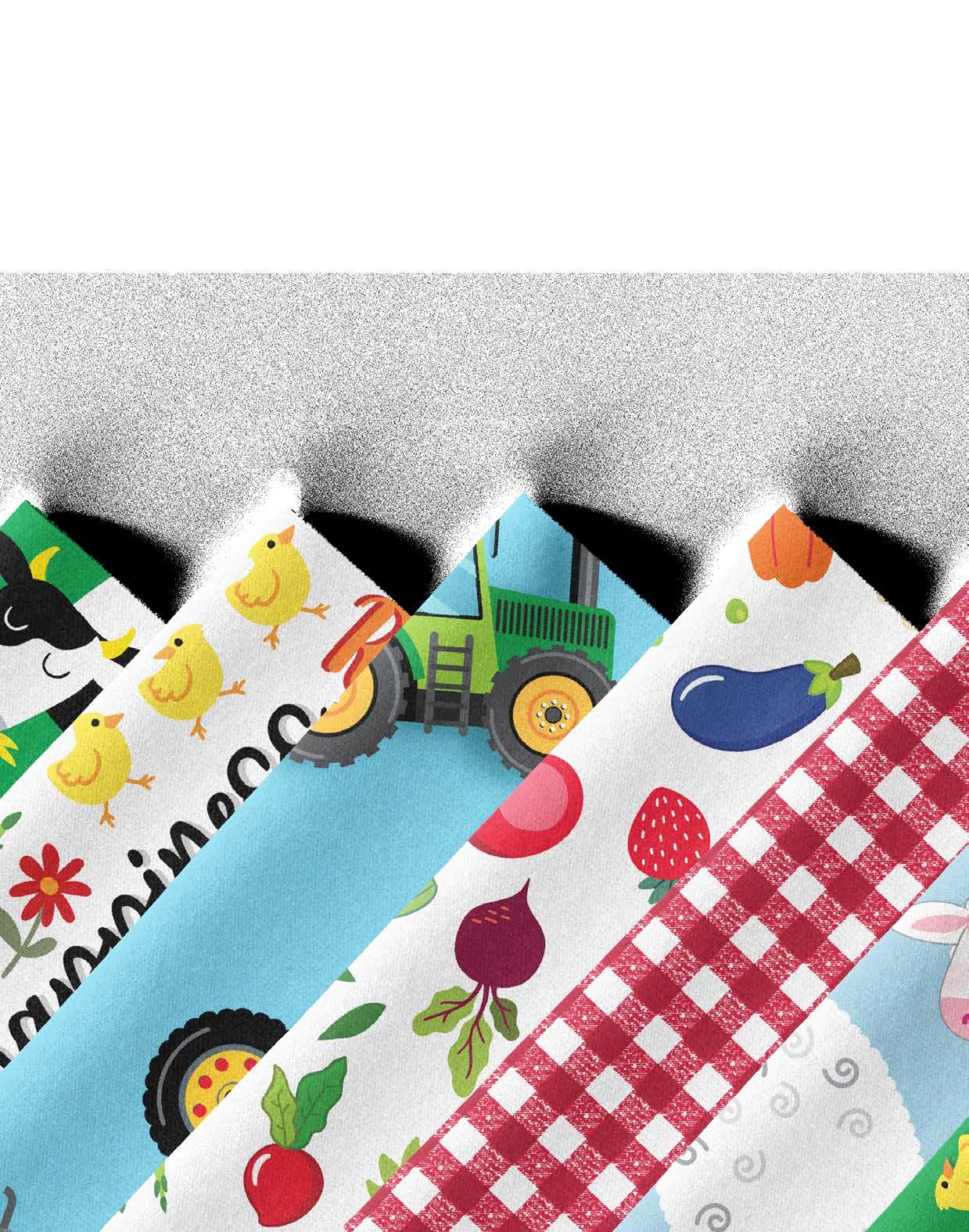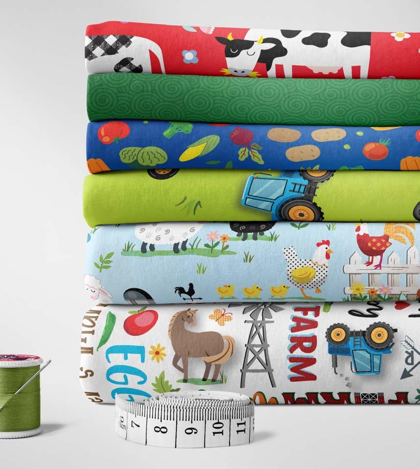 Each print in this kid-friendly collection is cuter than the next! In addition to the sweet farmyard animals, you’ll find tractors, vegetables, swirls and gingham. Don’t forget about the oversized panel, box print and border stripe - perfect to make a quick quilt that’s bursting with details. These colorful and playful prints are just begging to be made into a snuggle quilt for your little farmer to love!