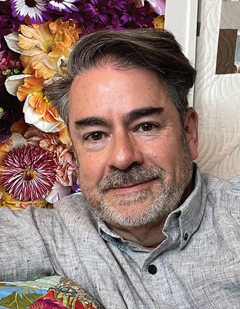Nicholas Lapp is a multidisciplined design professional and quiltmaker living in Portland, Oregon with his Corgi Elsie. The flowers in his stunning floral collages are gleaned from his garden and houseplants and from specialty nurseries and seasonal farmer’s markets from San Francisco to Seattle.