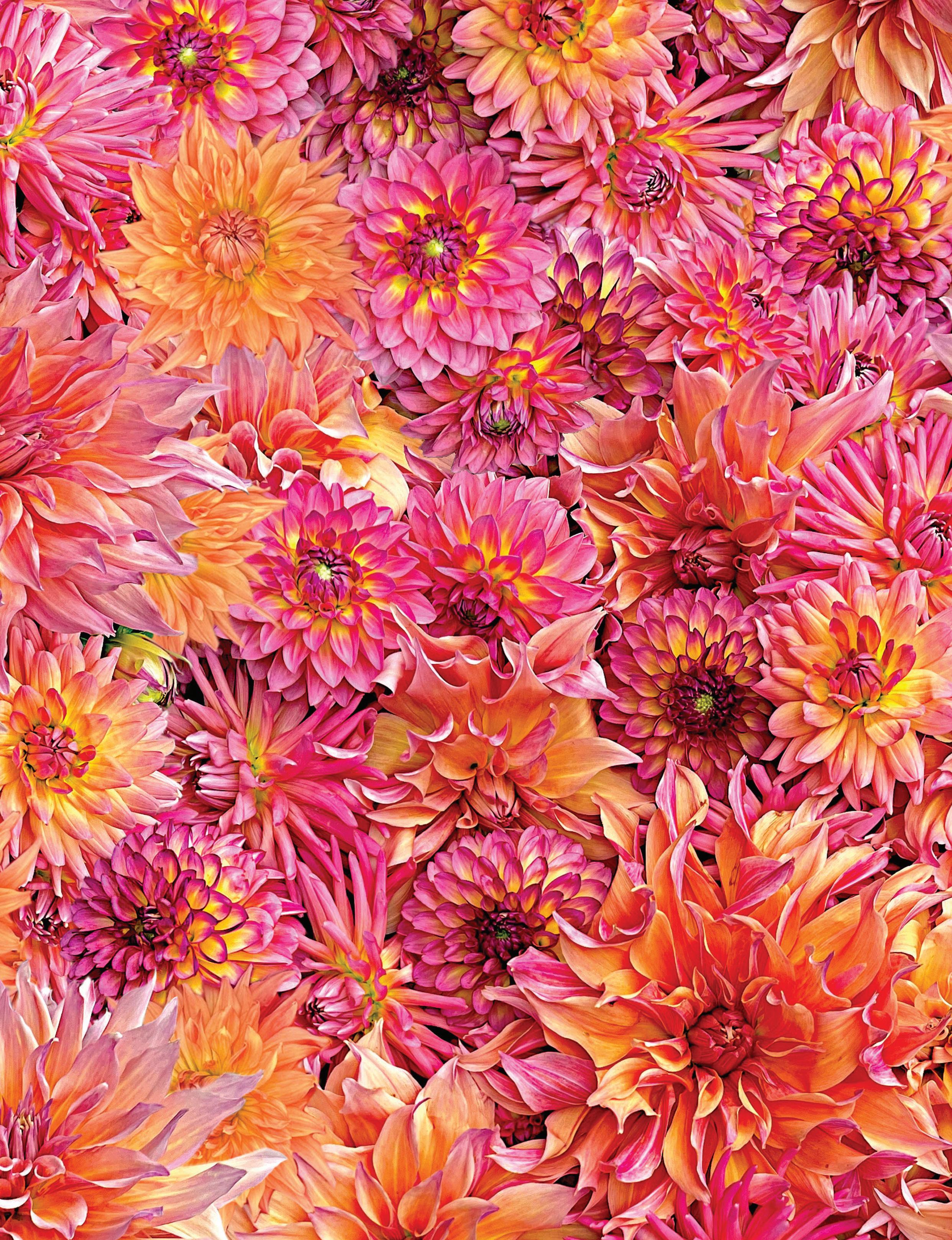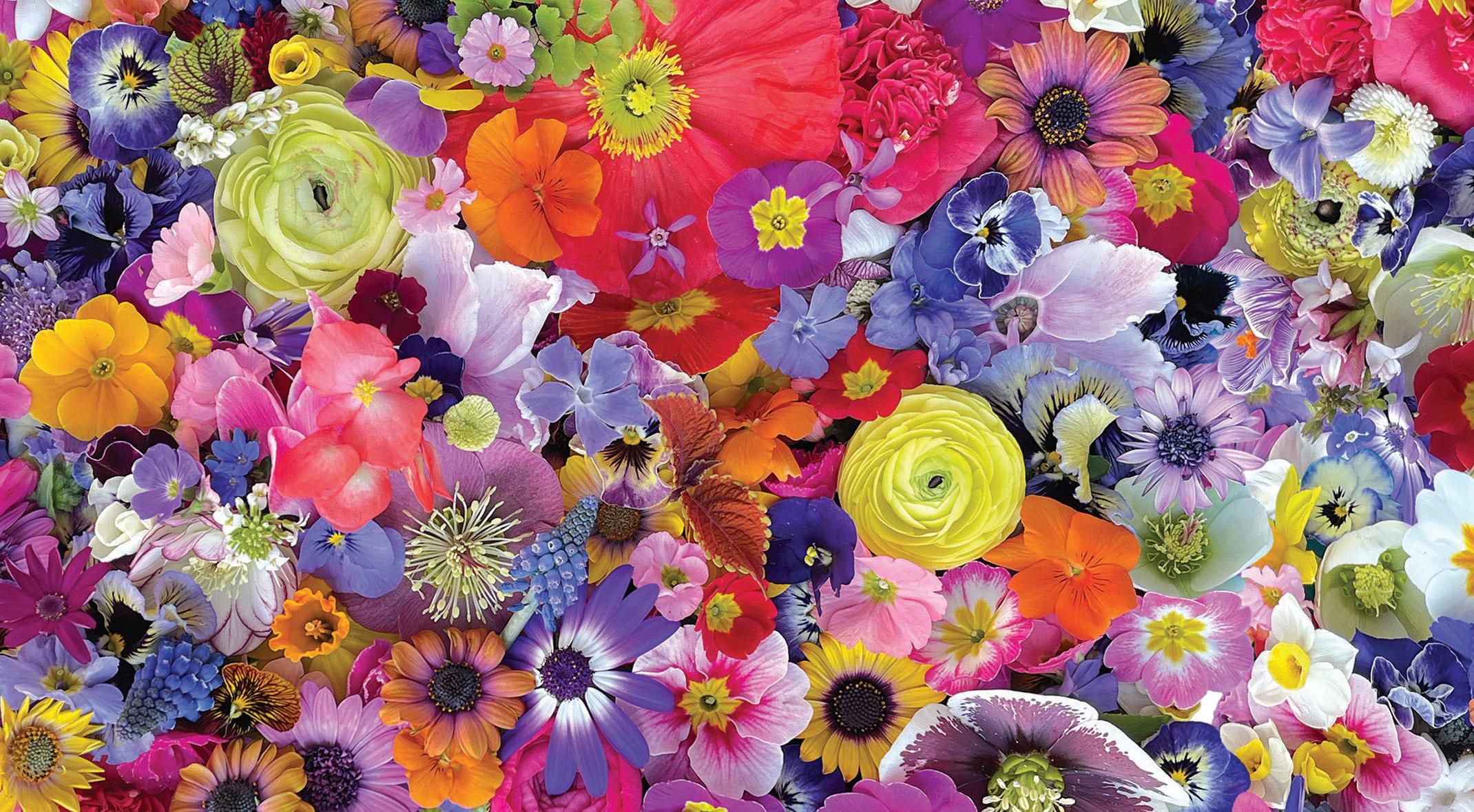 Nicholas creates these photo collages using hundreds of meticulously arranged petals, leaves, and blossoms, which are then captured in his unique photography process.