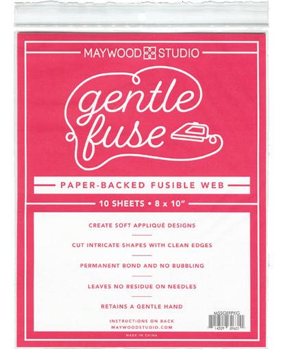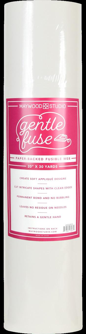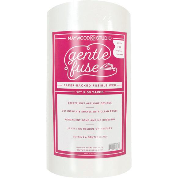 Create soft appliqué designs with Gentle Fuse, a paper-backed fusible web from Maywood Studio. It fuses to fabric in seconds to create a permanent bond, allowing you to cut out intricate shapes with clean, no-fray edges. Gentle Fuse is a perfect substitute for Soft Fuse, as it leaves no residue on sewing needles and retains a gentle hand.