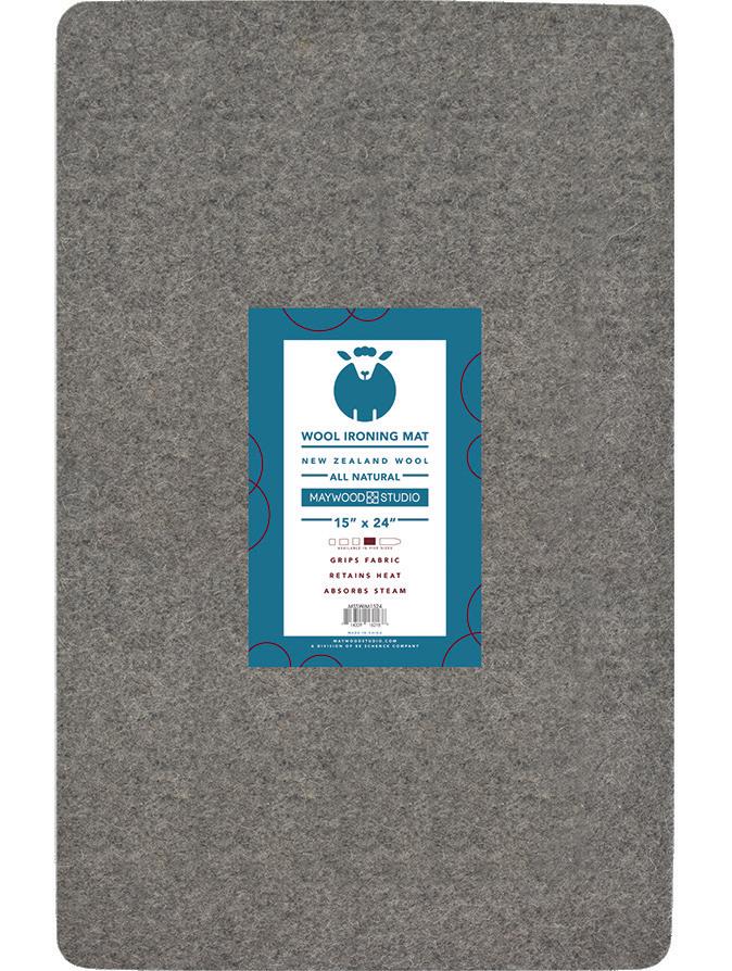 Maywood studio wool notions are essential accessories for quilting, sewing, & crafting. We offer 6 sizes of wool ironing mats: Two with printed grids, a wood-core pressing bar, and light & dark dryer balls. Experience how the porous, textured wool grips materials and absorbs heat & moisture, creating the ideal surface for pressing and blocking with professional-level results.