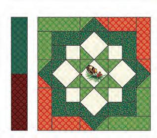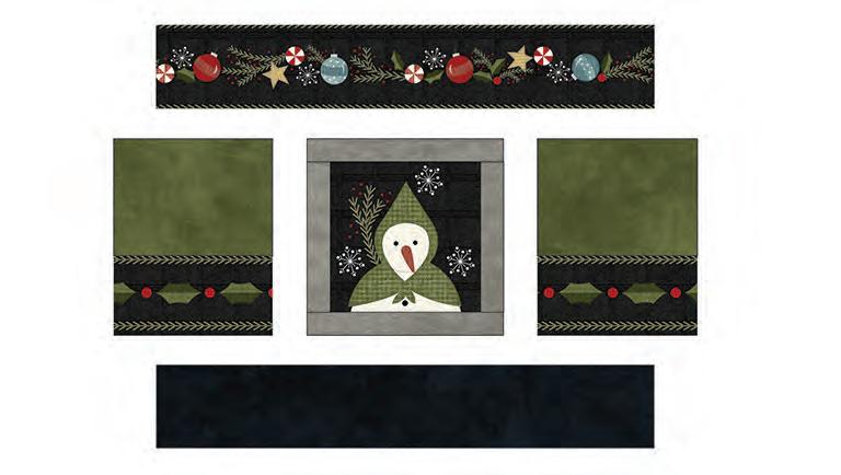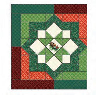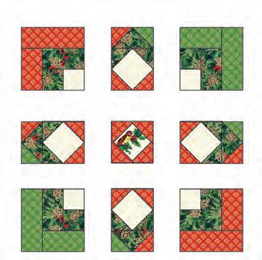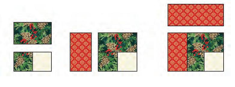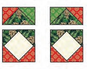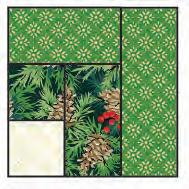 Fabric 5: Green Pinecones Cut (8) 2" x WOF strips. Subcut into: B: (72) 2 x 2" squares C: (48) 2 x 3.5" rectangles