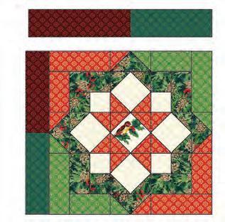 Cut the stripes into 4-1/2" strips along the LOF From the holly leaf Stripe section subcut: B: (8) 4-1/2" x 8-1/2" stripe sections