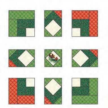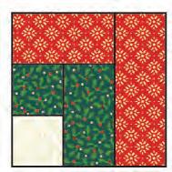 Fabric 6: Green Holly Cut (8) 2" x WOF strips. Subcut into: B: (72) 2 x 2" squares C: (48) 2 x 3.5" rectangles *Use leftover from B strip to cut for C