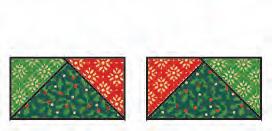 1. Sew (12) F8-F (red) rectangles to (12) F7-F (green) retangles. Sew to the left side of each Block 1 and Block 2. Make sure to orient the red next to the red and the green next to the green as illustrated.