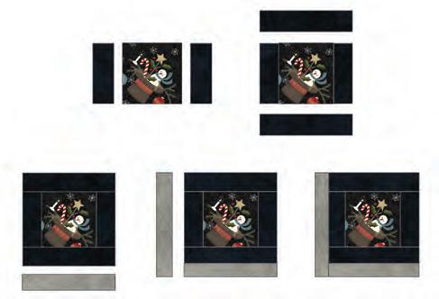 *Each block has the grey rectangles sewn to a different side. Make sure to follow the illustrations on this page for the layouts.