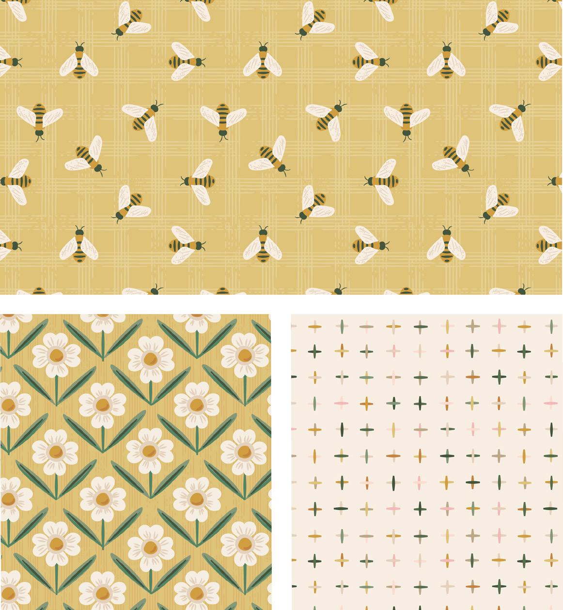 explores little parts of nature with Leah’s signature style by combining florals with modern geometric prints. This collection features graphic flowers, butterflies, bees, seeds, the sun, and the moon in earthy tones and prints that feel bohemian yet modern at the same time.