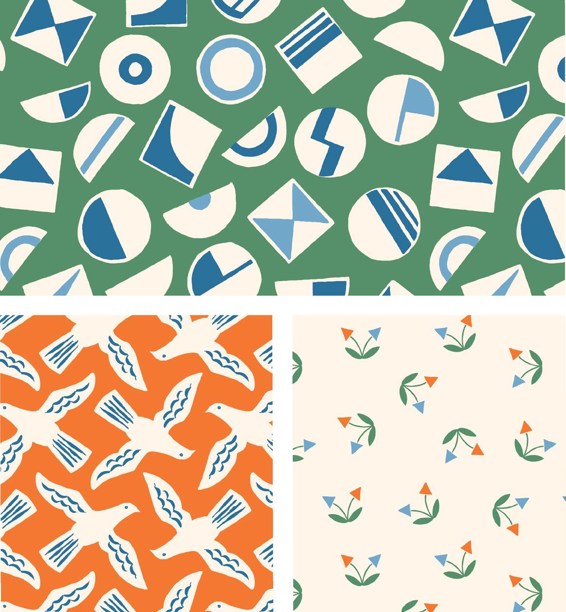 ARIANA creates joyful patterns from her peaceful studio in Yorkshire, UK. Her designs are simultaneously timeless yet fresh, mature yet cheerful. It was whilst studying for an MA in Design History that Ariana fell head over heels in love with 1930s textiles, and she enjoys incorporating these Art Deco influences into her own patterns.